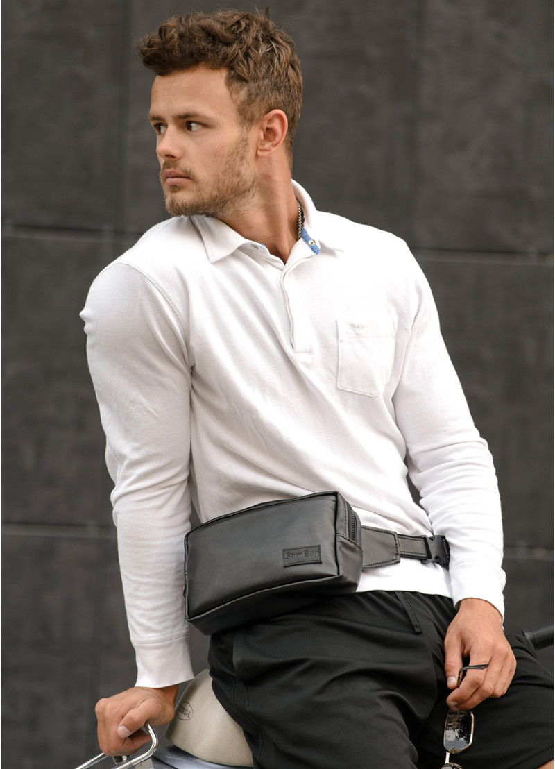 Чоловіча бананка Sambag Harvi Eco чорного кольору виконана з натуральної еластичної шкіри, яка має водовідштовхуючі властивості. В середині підкладка із матеріалу оксфорд. Підкладка бере на себе навантаження, завдяки чому термін служби бананки значно збільшується. Вона має якісну пластикову блискавку з металевими бігунками з фіксаторами. Спереду бананка має додаткову кишеню на магніті. Ззаду додаткова маленька кишеня на блискавці. Всередині сумки декілька відділень, одне з яких на блискавці. Ремінець регулюється від 86 до 123 см, завдяки чому її можна зручно носити як на поясі, так і на плечі.