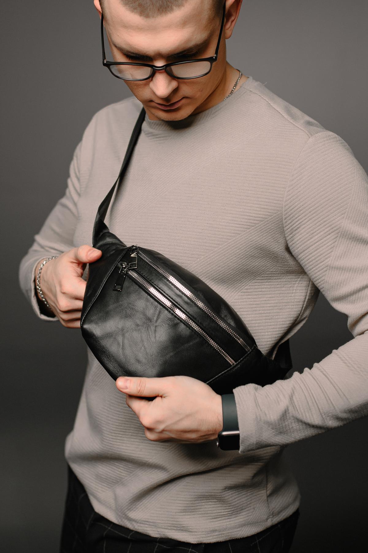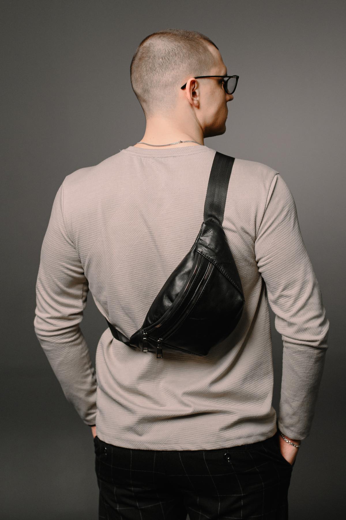 Чоловіча бананка Skill чорного кольору виконана із натуральної овечої шкіри. У бананки одне основне відділення та два додаткових спереду та ззаду, всі вони на металевій блискавці. Максимальна довжина ремінця 100 см. Бананка досить велика, тому ви зможете помістити в неї всі необхідні речі.