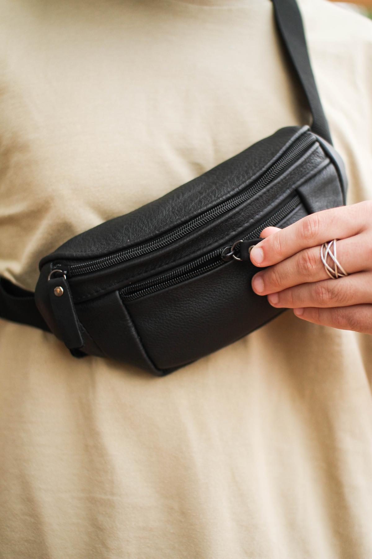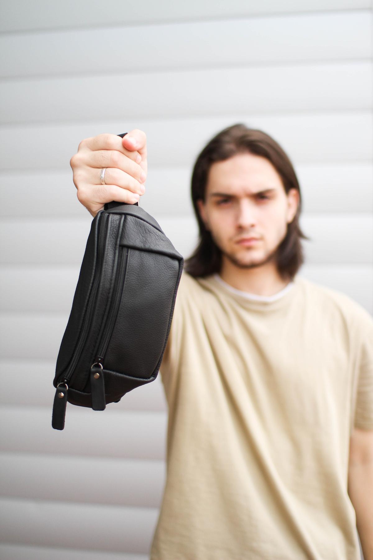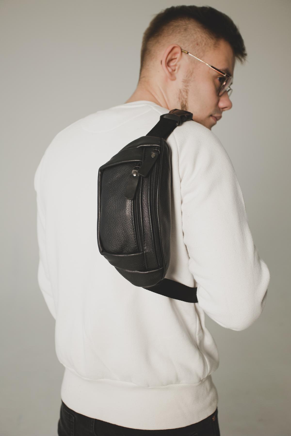 Чоловіча бананка Skill чорного кольору виконана із натуральної шкіри КРС. У бананки одне основне відділення, а також два додаткових спереду та позаду. Бананка оснащена пластиковими блискавками. Ремінець регулюється до 120 см. Чудовий варіант, якщо вам потрібна компактна бананка.