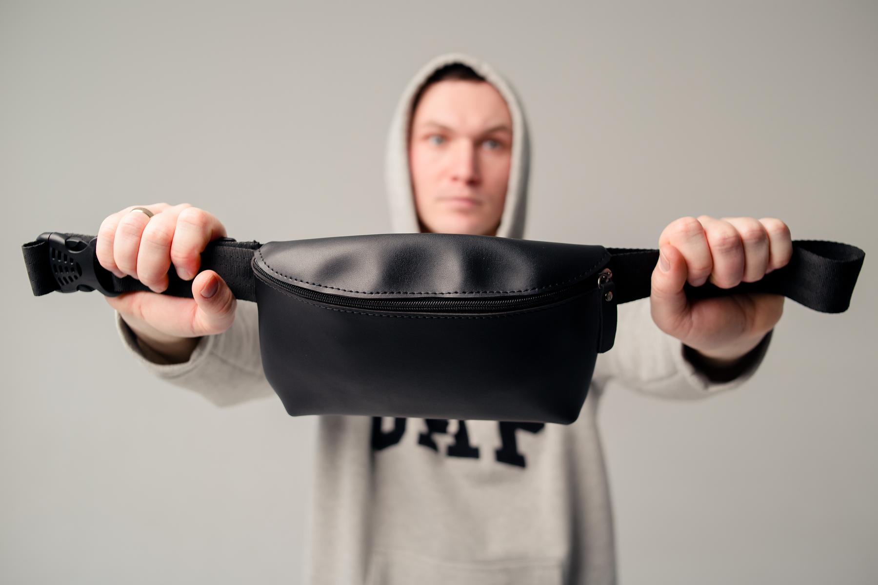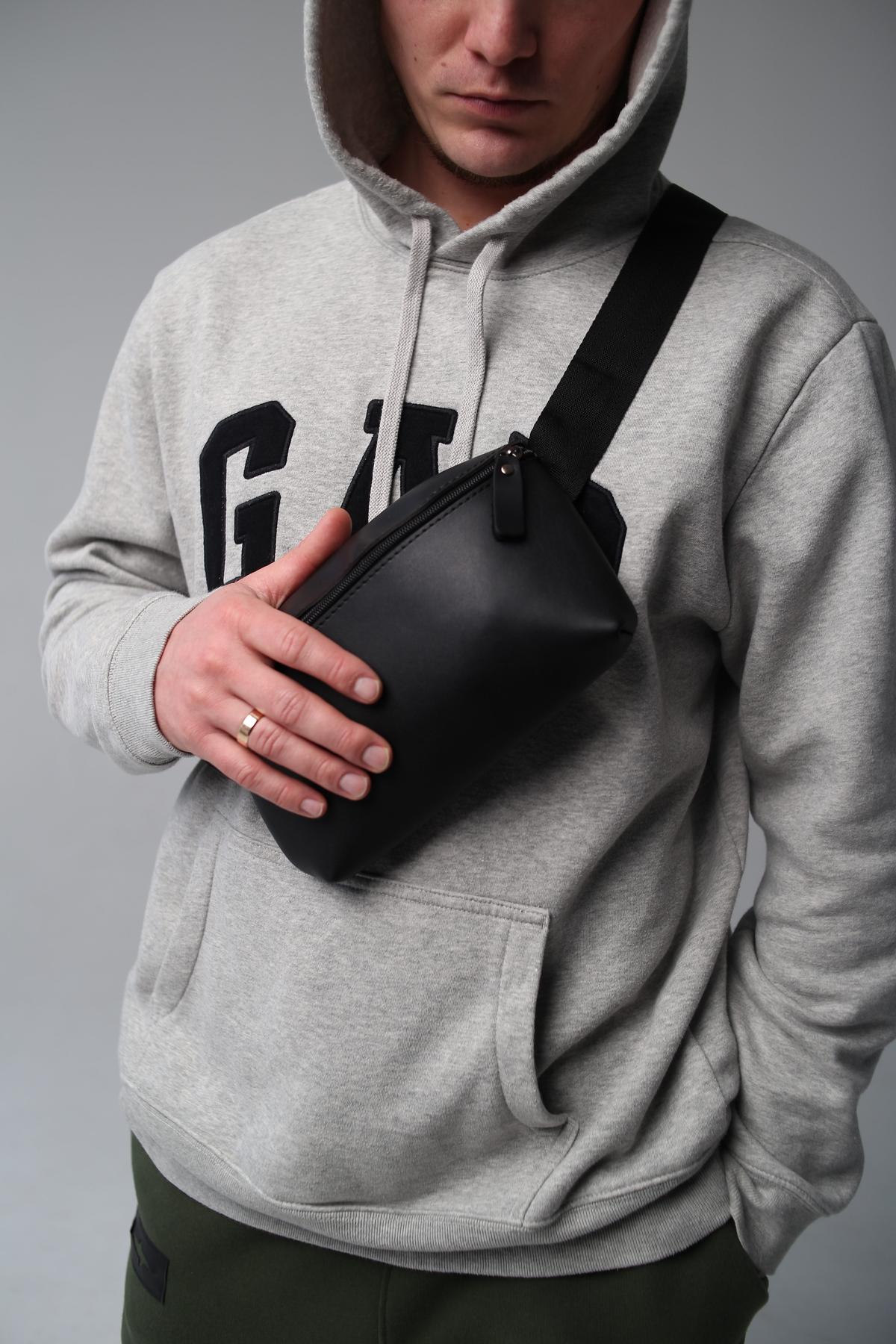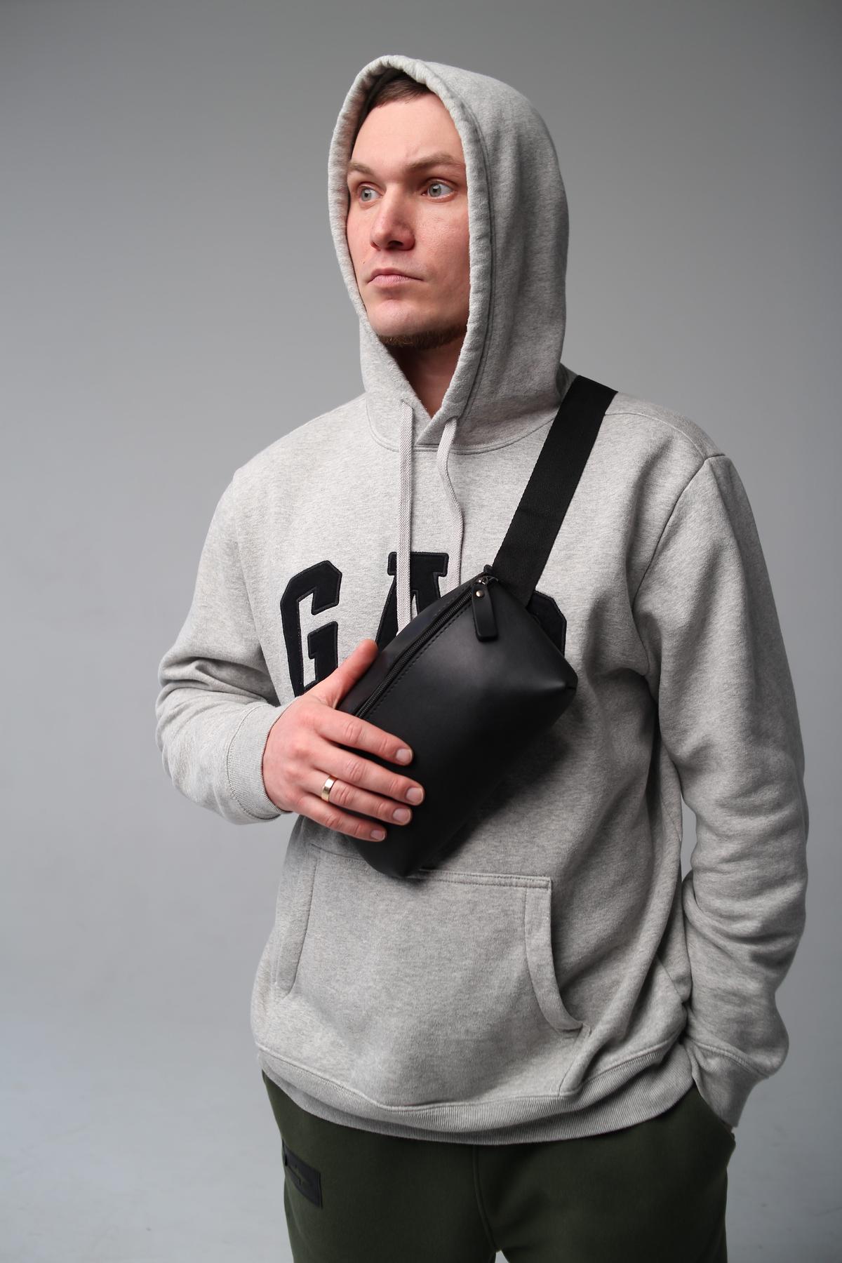 Чоловіча бананка Skill прямокутної форми і чорного кольору виконана із шутчної шкіри. У бананки одне основне відділення на пластиковій блискавці. Ремінець регулюється до 115 см.