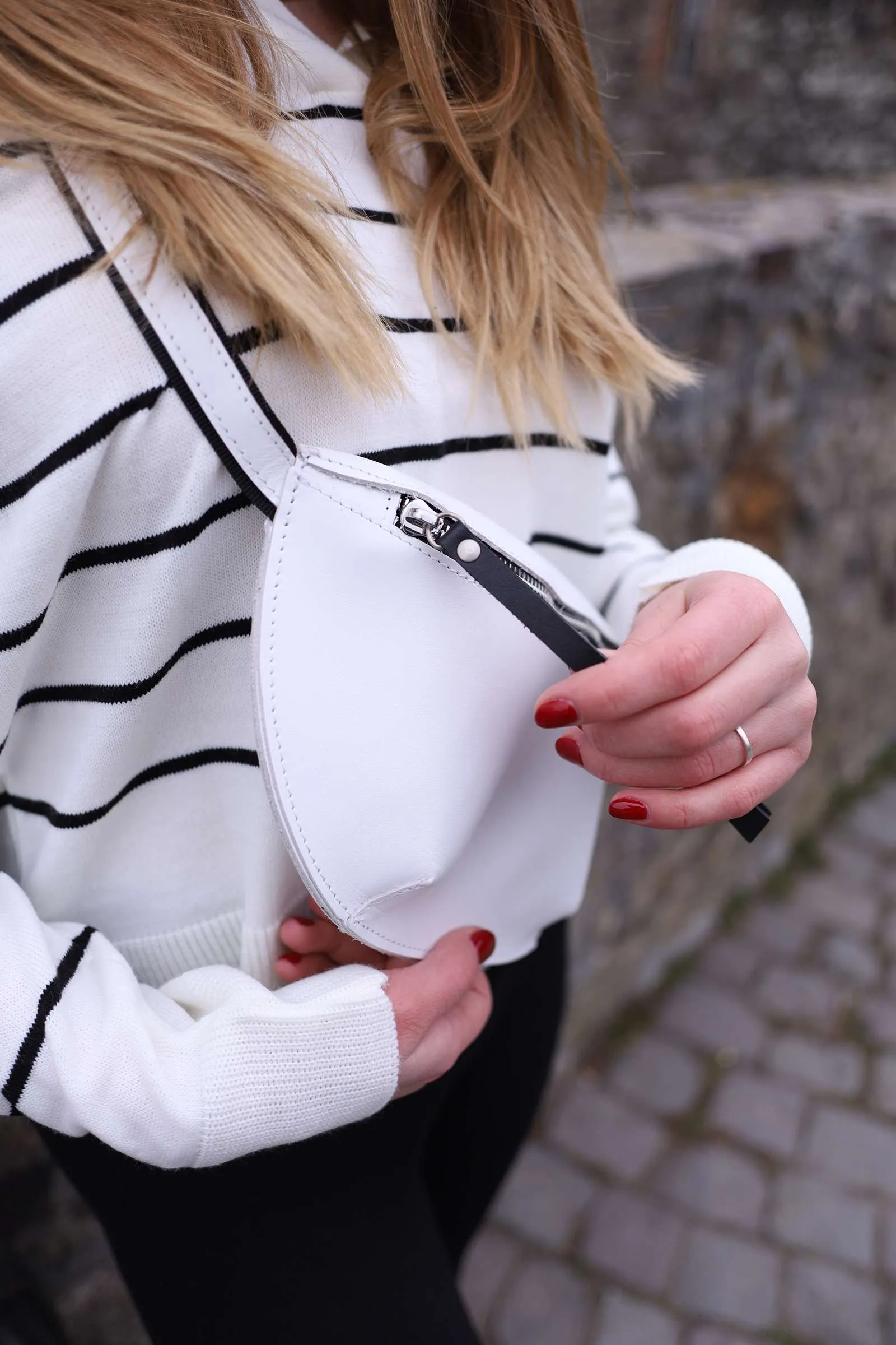 Бананка жіноча Miros Florencia білого кольору виконана з натуральної шкіри, яка має водовідштовхуючі властивості. Вона має якісні металеві блискавки з металевими бігунками з фіксаторами. У сумки одне основне відділення з додатковою кишенею, для телефону або інших речей. Ремінець регулюється від 80 до 140 см, завдяки чому її можна зручно носити як на поясі, так і на плечі.