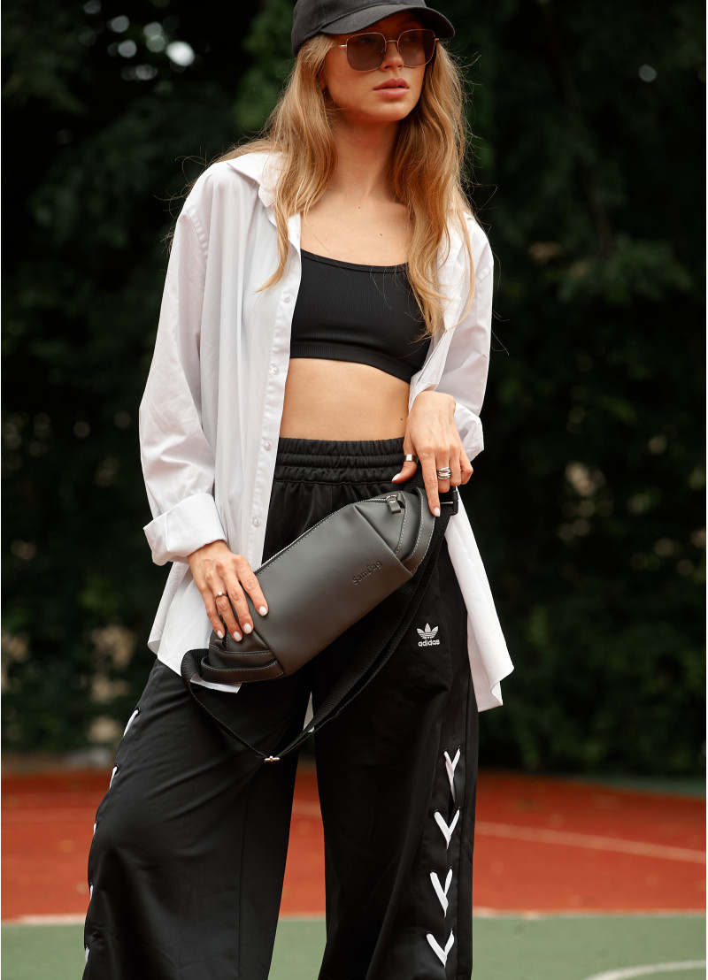 Жіноча бананка Sambag Holster MSH графітового кольору виконана із якісної екошкіри. В середині підкладка із матеріалу оксфорд. Підкладка бере на себе навантаження, завдяки чому термін служби бананки значно збільшується. Сумка оснащена металевою блискавкою та металевими бігунками з фіксаторами, тому самостійно сумка відкриватись не буде. Ззаду бананка має додаткову кишеню на блискавці. Всередині одне основне відділення з декількома кишенями. Ремінець регулюється від 100 до 145 см.