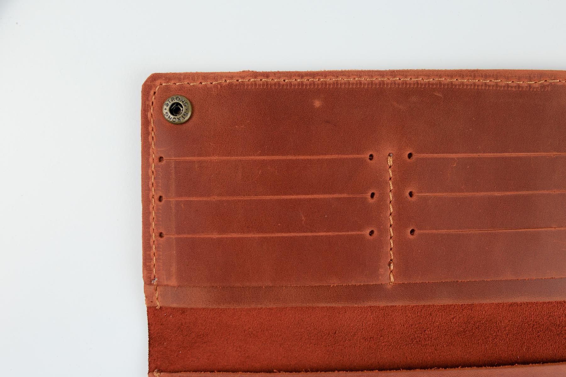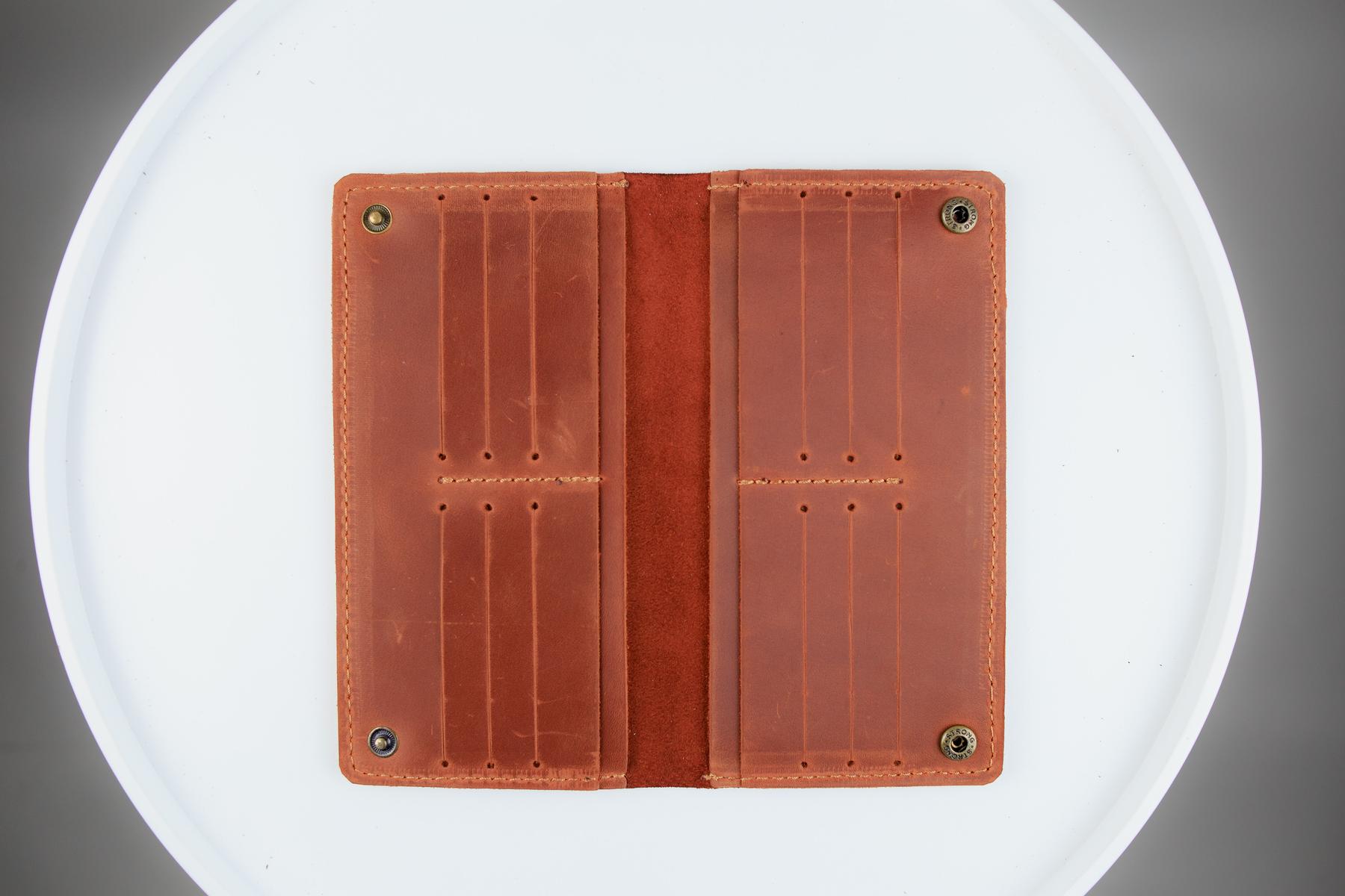 Портмоне чоловіче Skill Crazy Horse коричневого кольору виготовлене з натуральної шкіри. Портмоне застібається на металеві кнопки, має два основних відділення для купюр та 12 осередків для карток.