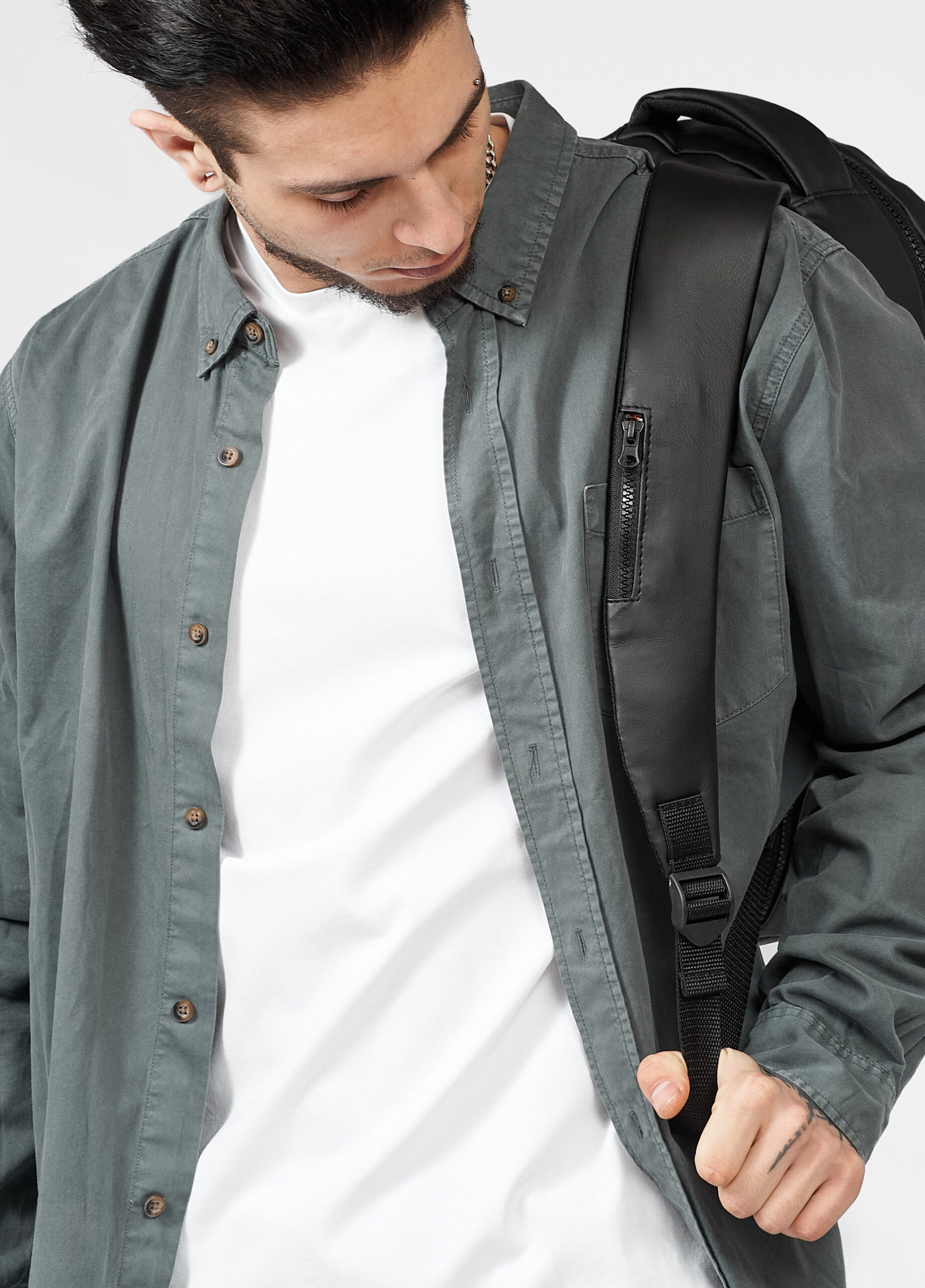 • Підкладка із матеріалу оксфорд середньої щільності. Він міцний, стійкий до подряпин, легко чиститься, нитки з нього не вилазять. Завдяки з’єднанню всіх частин підкладки між собою, навантаження на екошкіру зменшується і розподіляється рівномірно, завдяки чому значно збільшується термін експлуатації рюкзака.
