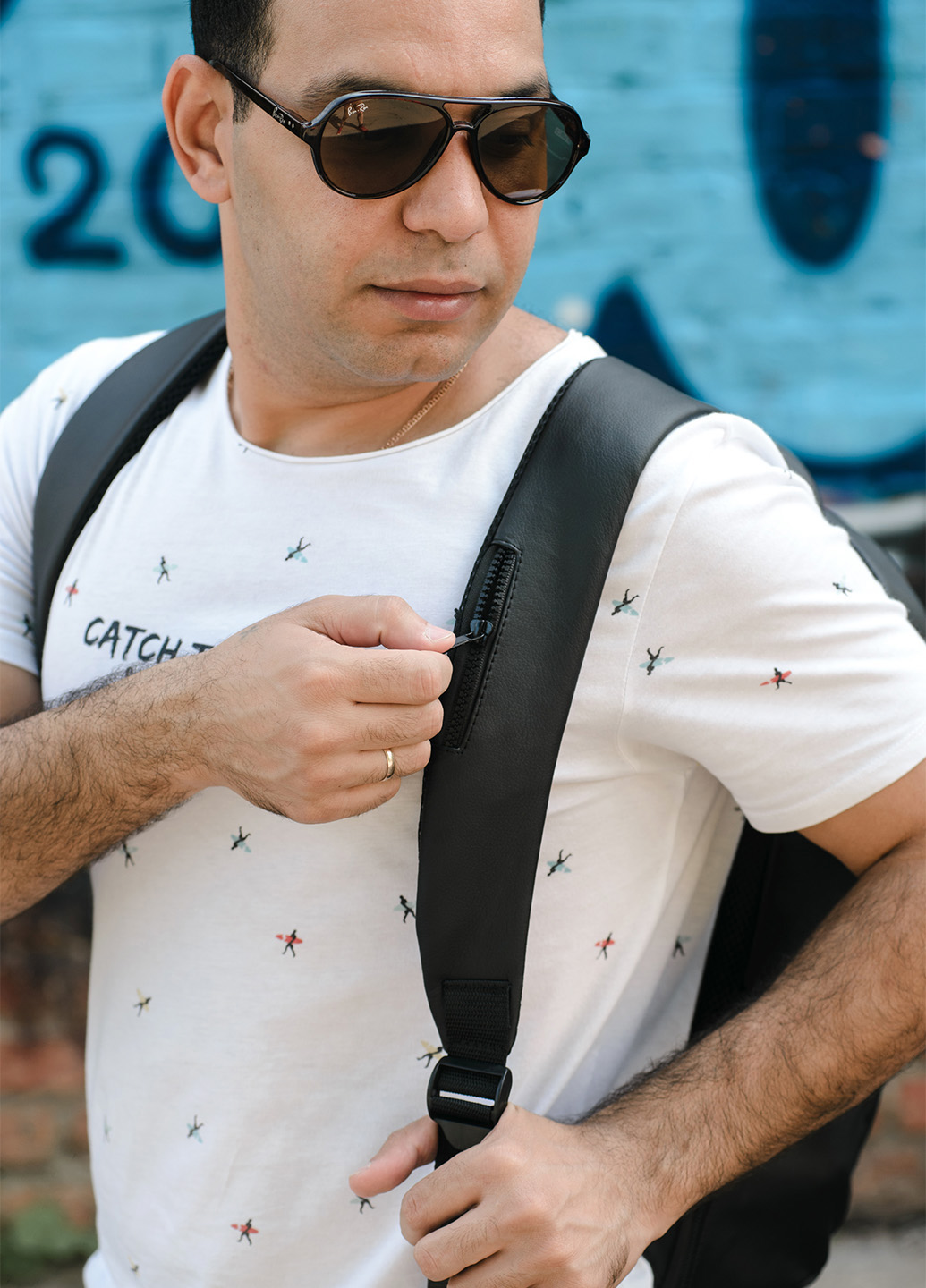 • На лицьовій стороні рюкзака прихована кишеня на блискавці. Дві додаткові кишені з боків на блискавці. Всередині основного відділення рюкзака є окреме відділення під ноутбук до 14 дюймів (залежить від пропорцій екрану та рамок навколо нього, при замовлені уточнюйте розмір свого гаджету). З іншого боку середини кишеня на блискавці та одна відкрита кишеня. На плечовому ремені є невелика додаткова кишеня.