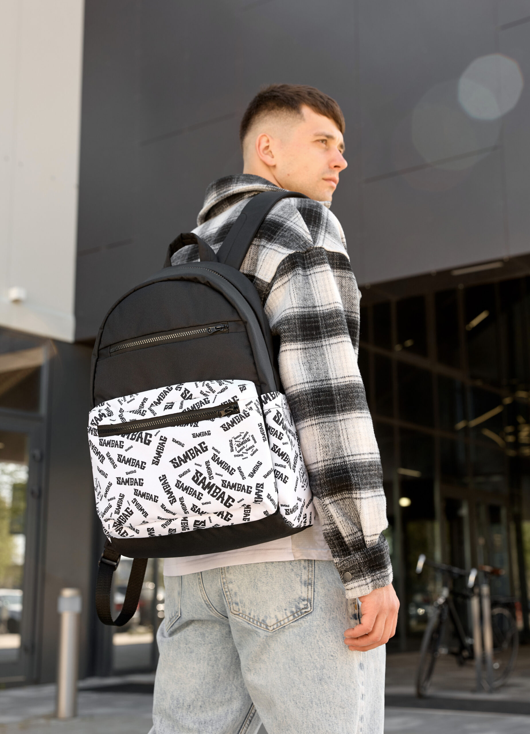 • Рюкзак чоловічий Sambag Zard LKT принт білий з чорнимЧорний