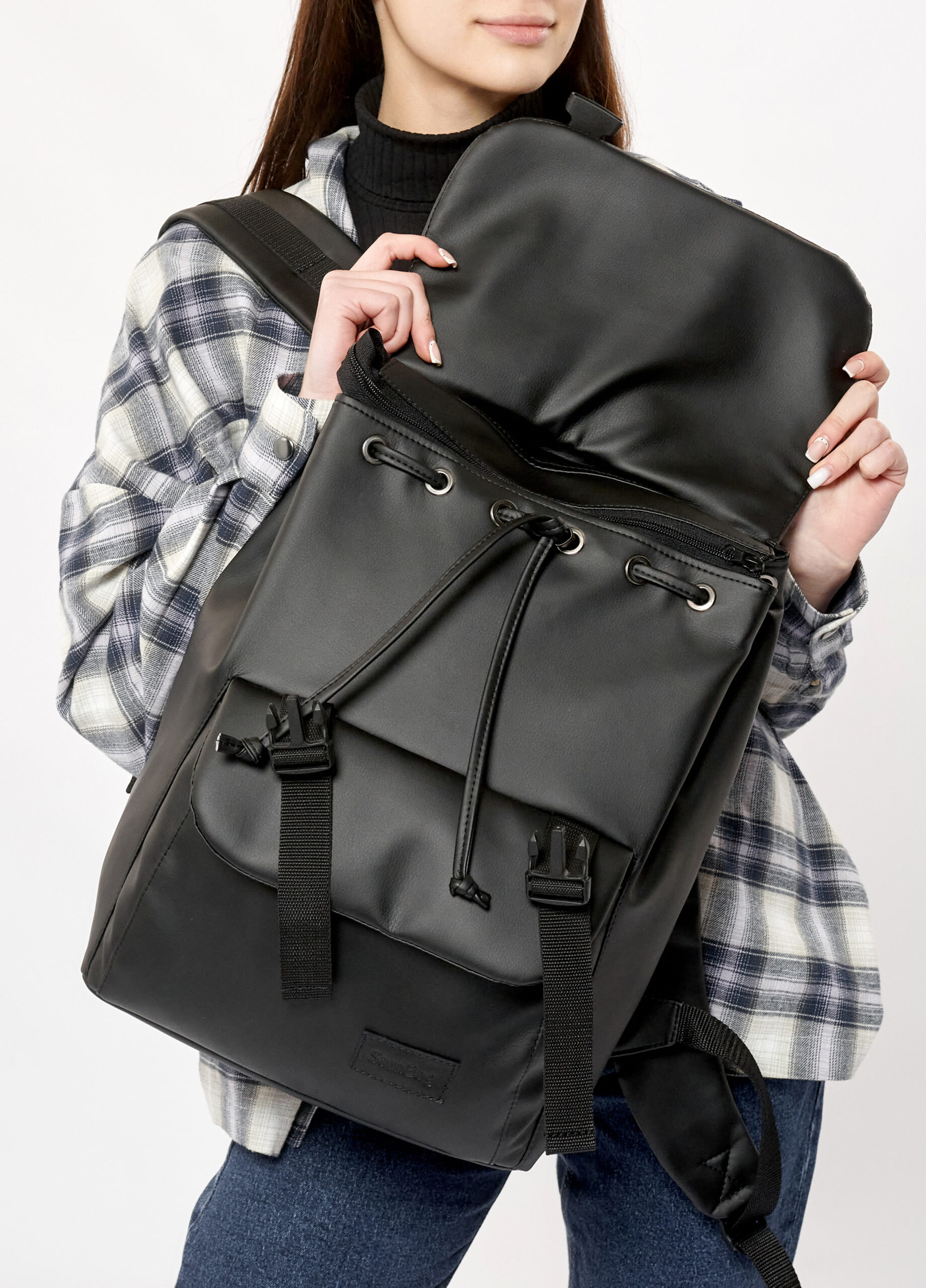 Функціональність: ззовні рюкзака спереду одне велике відділення і над ним карман на блискавці. Два кармани з боків на блискавці. Всередині рюкзака окреме відділення під ноутбук до 17 дюймів. Відділення надійно захищено піноматеріалом по всій висоті гаджета. Також захищені піноматеріалом два невеликих відкритих кармани. З іншого боку середини карман на блискавці та один відкритий карман.