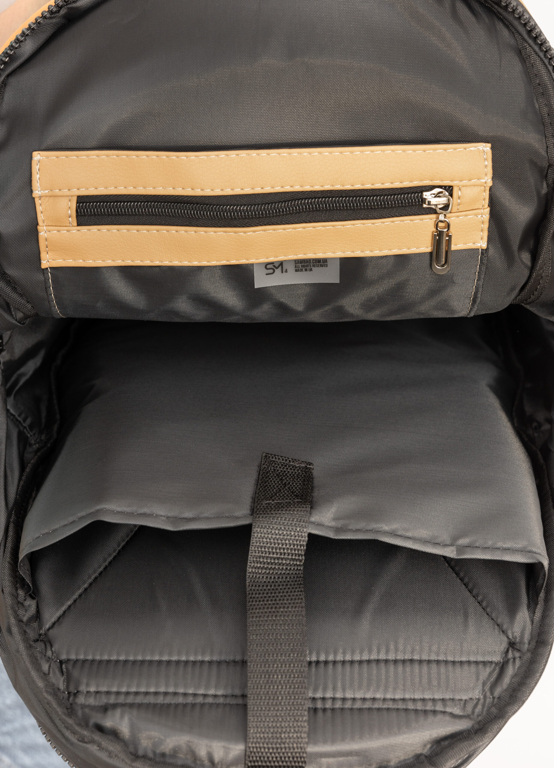 • Підкладка із матеріалу оксфорд середньої щільності. Він міцний, стійкий до подряпин, легко чиститься, нитки з нього не вилазять. Завдяки з’єднанню всіх частин підкладки між собою, навантаження на екошкіру зменшується і розподіляється рівномірно, завдяки чому значно збільшується термін експлуатації рюкзака.