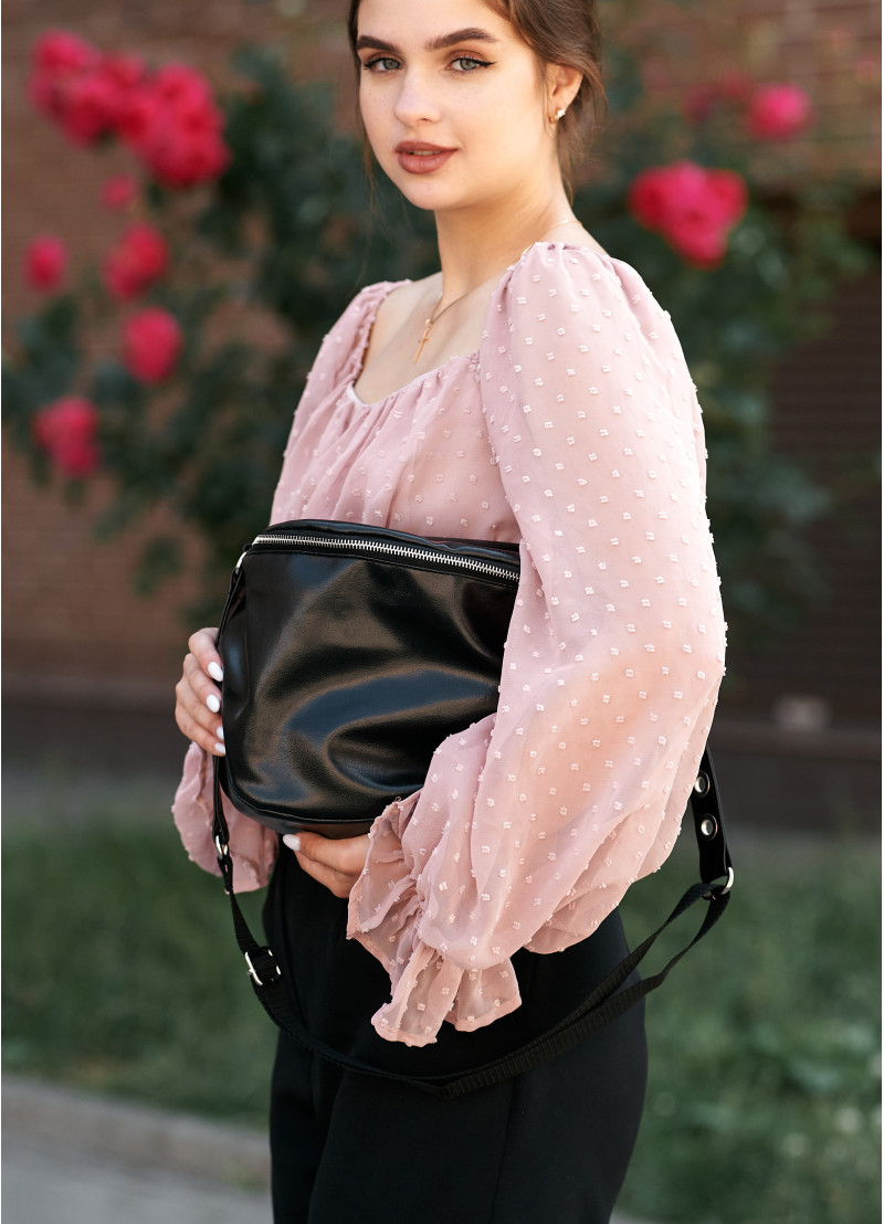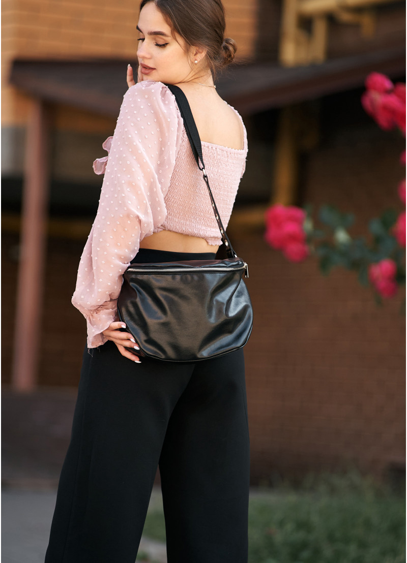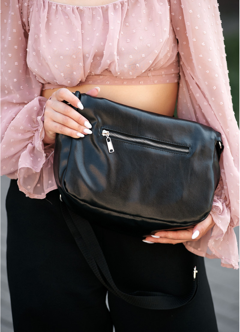 Жіноча сумка крос-боді Sambag Milano чорного кольору виконана з якісної екошкіри. Основне відділення сумочки на блискавці та має всередині дві кишені, одну на блискавці та одну відкриту. Матеріал підкладки Оксфорд. Зовні одна додаткова кишеня на блискавці з тильної сторони. Блискавка з надійного пластику, бігунки металеві з фіксаторами, щоб сумка самостійно не відкривалась. Ремінець з екошкіри надійно приєднаний за допомогою металевих кілець, він регулюється, а його максимальна довжина 146 см.