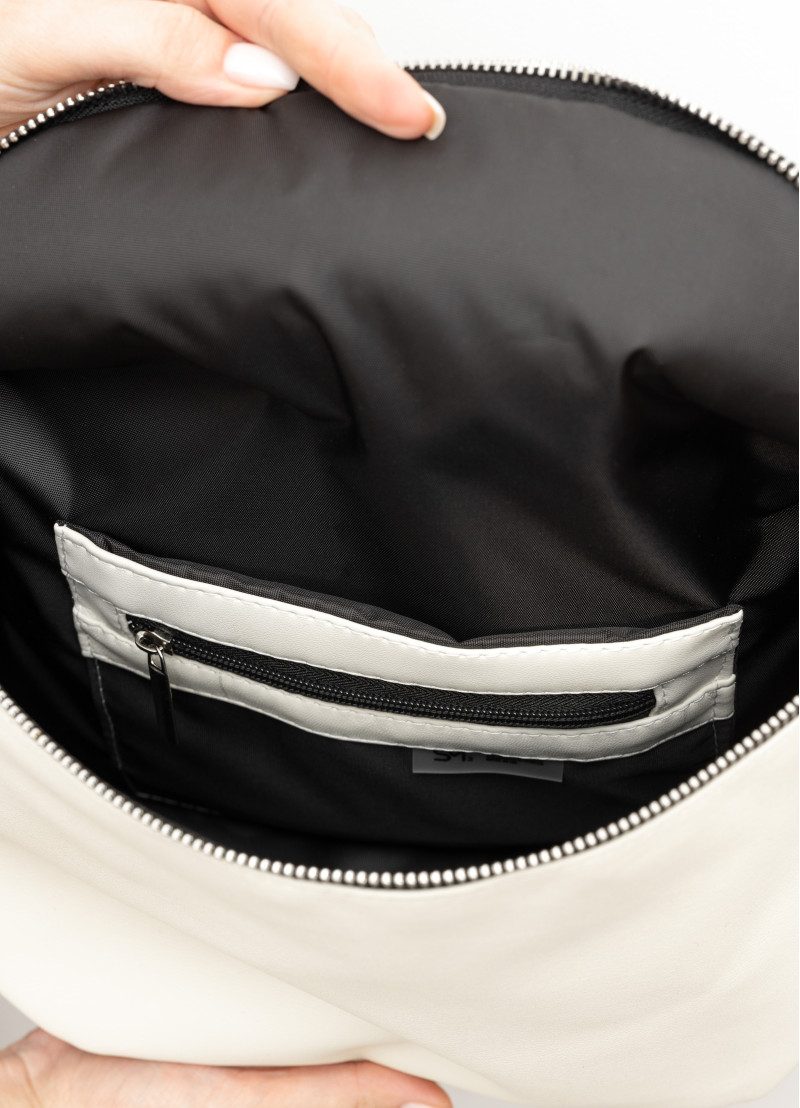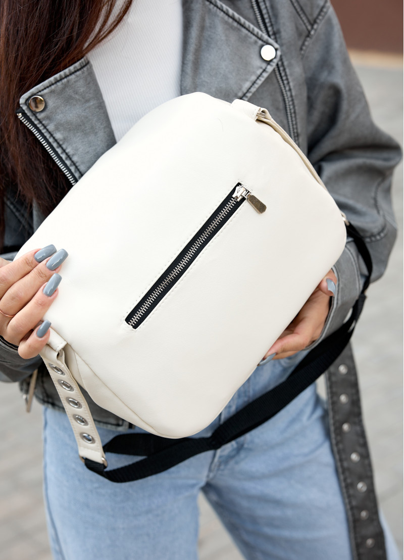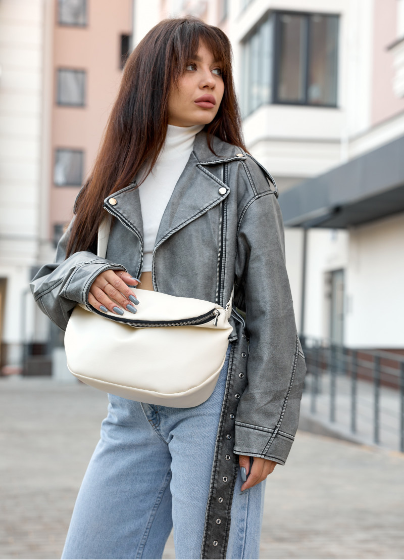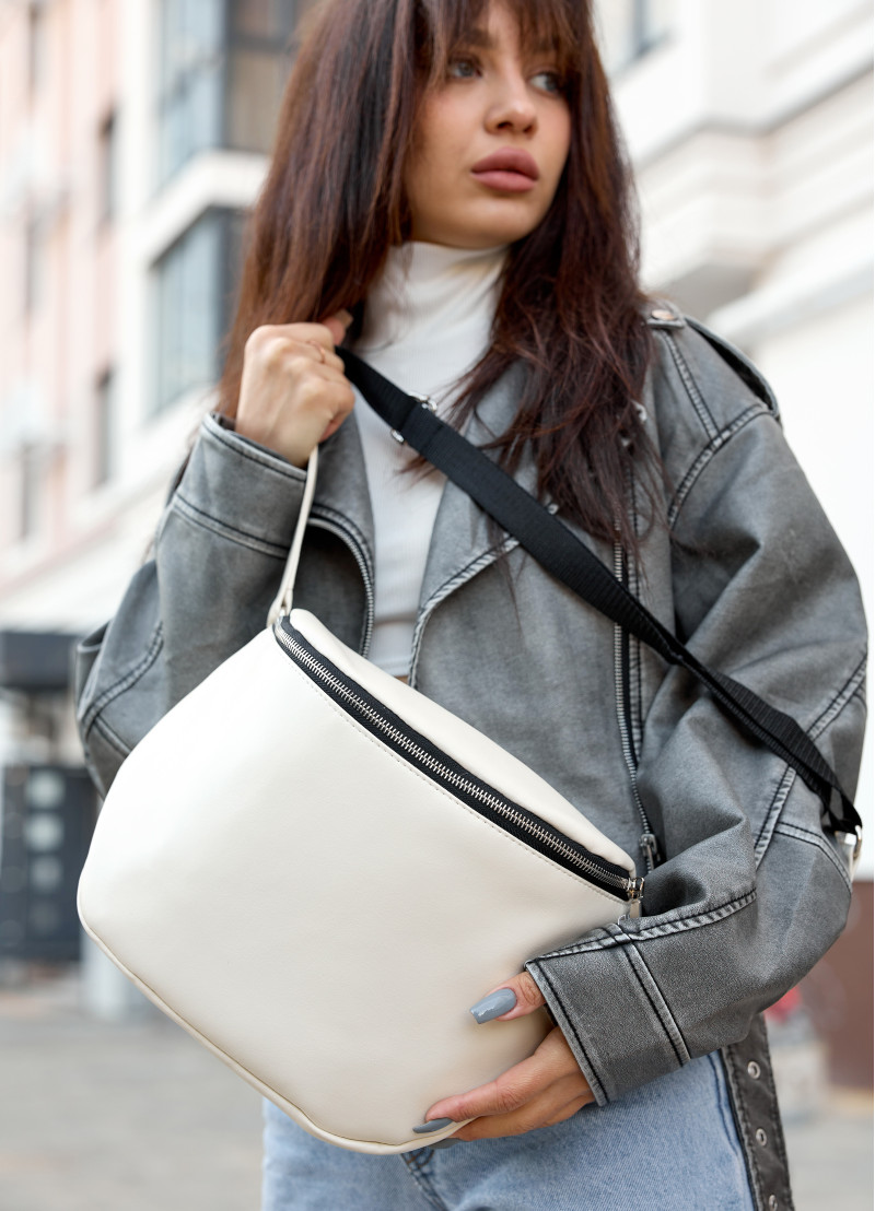 Жіноча сумка крос-боді Sambag Milano молочного кольору виконана з якісної екошкіри. Основне відділення сумочки на блискавці та має всередині дві кишені, одну на блискавці та одну відкриту. Матеріал підкладки Оксфорд. Зовні одна додаткова кишеня на блискавці з тильної сторони. Блискавка з надійного пластику, бігунки металеві з фіксаторами, щоб сумка самостійно не відкривалась. Ремінець з екошкіри надійно приєднаний за допомогою металевих кілець, він регулюється, а його максимальна довжина 146 см.