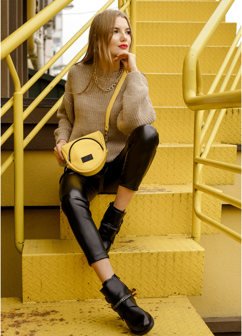 Жіноча сумка крос-боді Sambag Rose жовтого кольору виконана з якісної екошкіри. Основне відділення сумочки на блискавці та поділене на декілька кишень. Матеріал підкладки Оксфорд. Зовні дві додаткові кишені на блискавці з тильної та лицевої сторони. Фурнітура металева, блискавки з фіксаторами, щоб сумка самостійно не відкривалась. Ремінець регулюється, а його довжина 150 см.