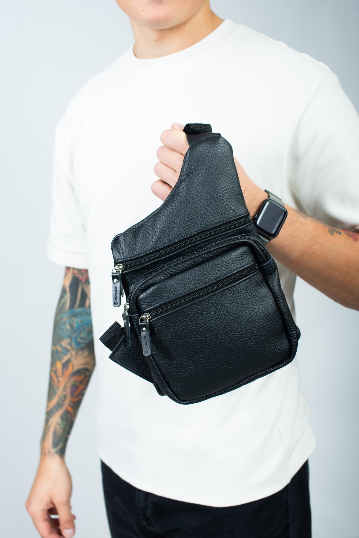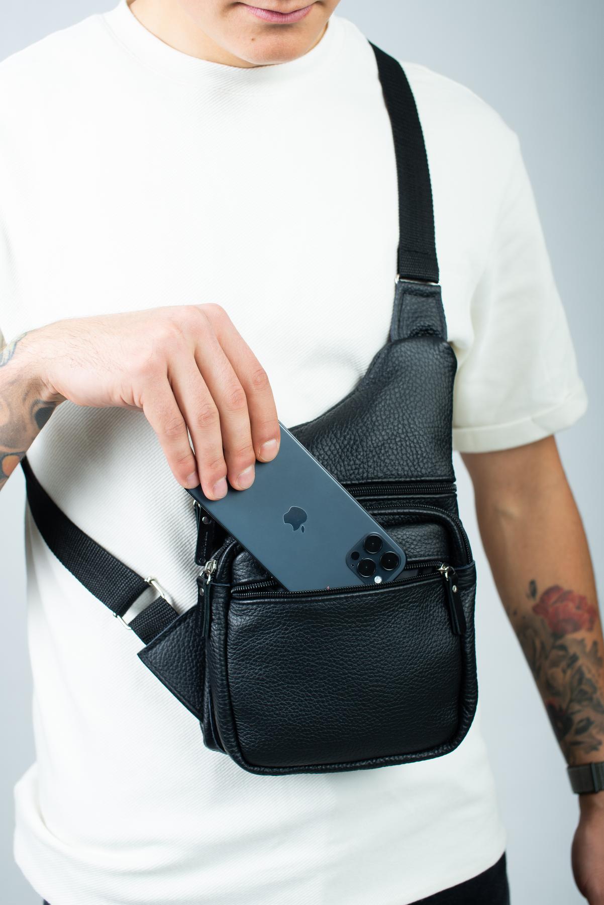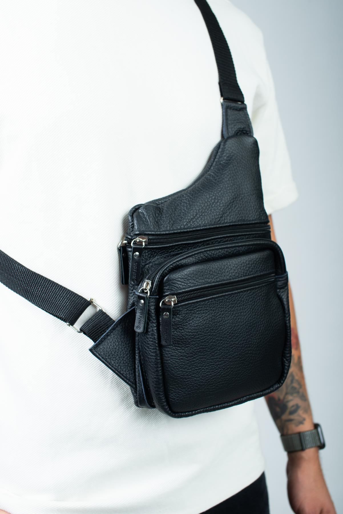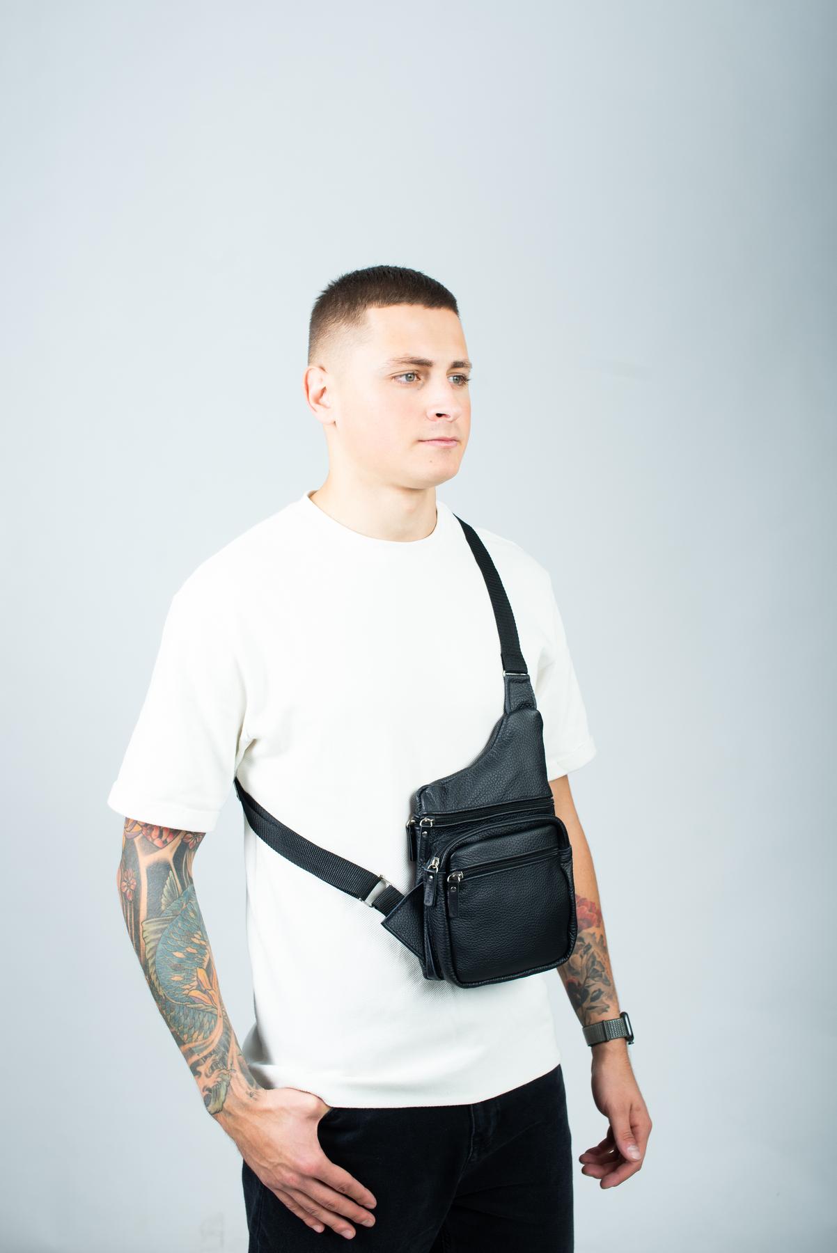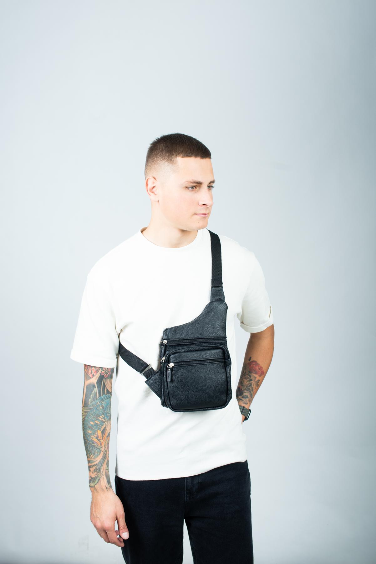 Чоловіча слінг сумка Skill чорного кольору виконана з натуральної шкіри. Одне основне відділення на блискавці, два додаткових відділення на лицьовій та одне на тильній стороні. Максимальна довжина ремінця 130 см. Слінг сумка підійде чоловікам, які постійно в русі та при цьому завжди хочуть виглядати стильно.