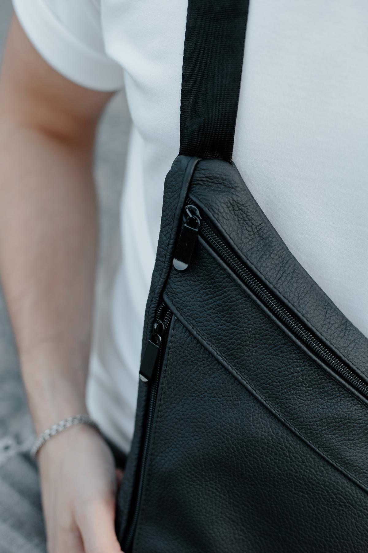 Чоловіча слінг сумка Skill чорного кольору виконана з натуральної шкіри. Одне основне відділення на блискавці, додаткове відділення на лицьовій стороні та одна кишеня на блискавці на тильній стороні. Максимальна довжина ремінця 125 см. Слінг сумка підійде чоловікам, які постійно в русі та при цьому завжди хочуть виглядати стильно.