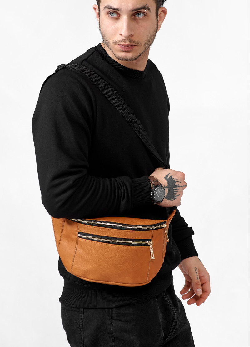 Мужская бананка Sambag Tirso Max коричневого цвета выполнена из натуральной кожи. В середине подкладка из материала оксфорд. Основное отделение на металической молнии. Кроме основного отделения бананка имеет два дополнительных внешних отделения спереди и сзади на молниях. Основное отделение имеет несколько карманов, один из которых на молнии. Ремешок из текстиля регулируется от 110 см до 165 см.