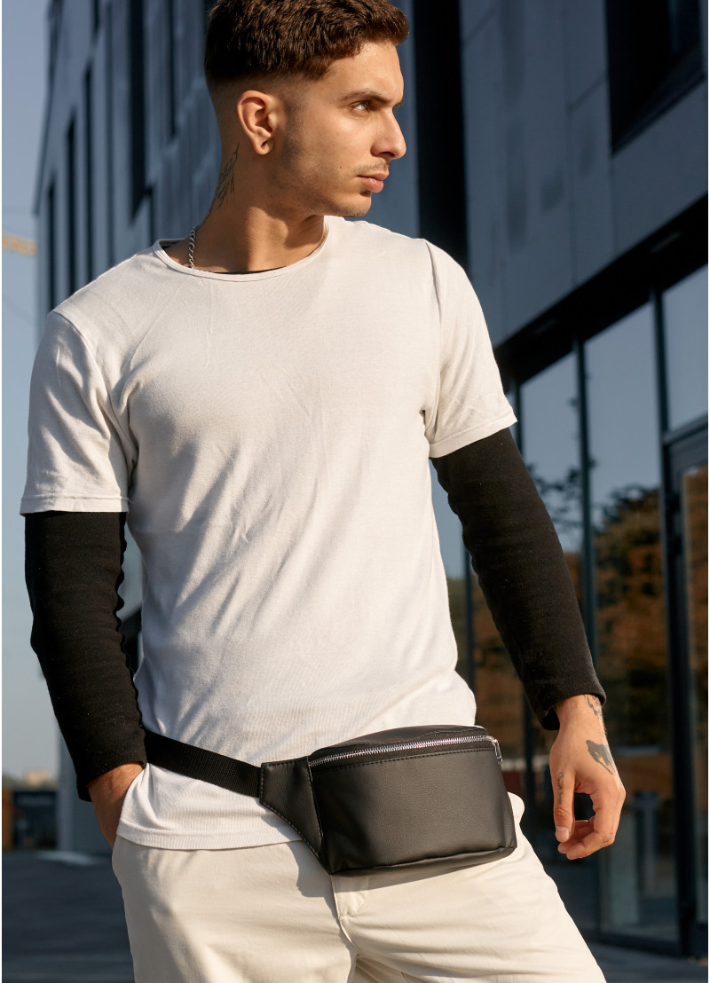 Мужская бананка Sambag Tirso Mss черного цвета выполнена из экокожи. В середине подкладка из материала Оксфорд. Подкладка берет на себя нагрузку, благодаря чему срок службы бананки значительно увеличивается. Она имеет металические молнии с металлическими бегунками с фиксаторами, поэтому сумка самостоятельно открываться не будет. Сзади бананка имеет дополнительное отделение на молнии. Внутри сумки несколько карманов. Ремешок регулируется от 86 см до 123 см, благодаря чему ее можно удобно носить как на поясе, так и через плечо.