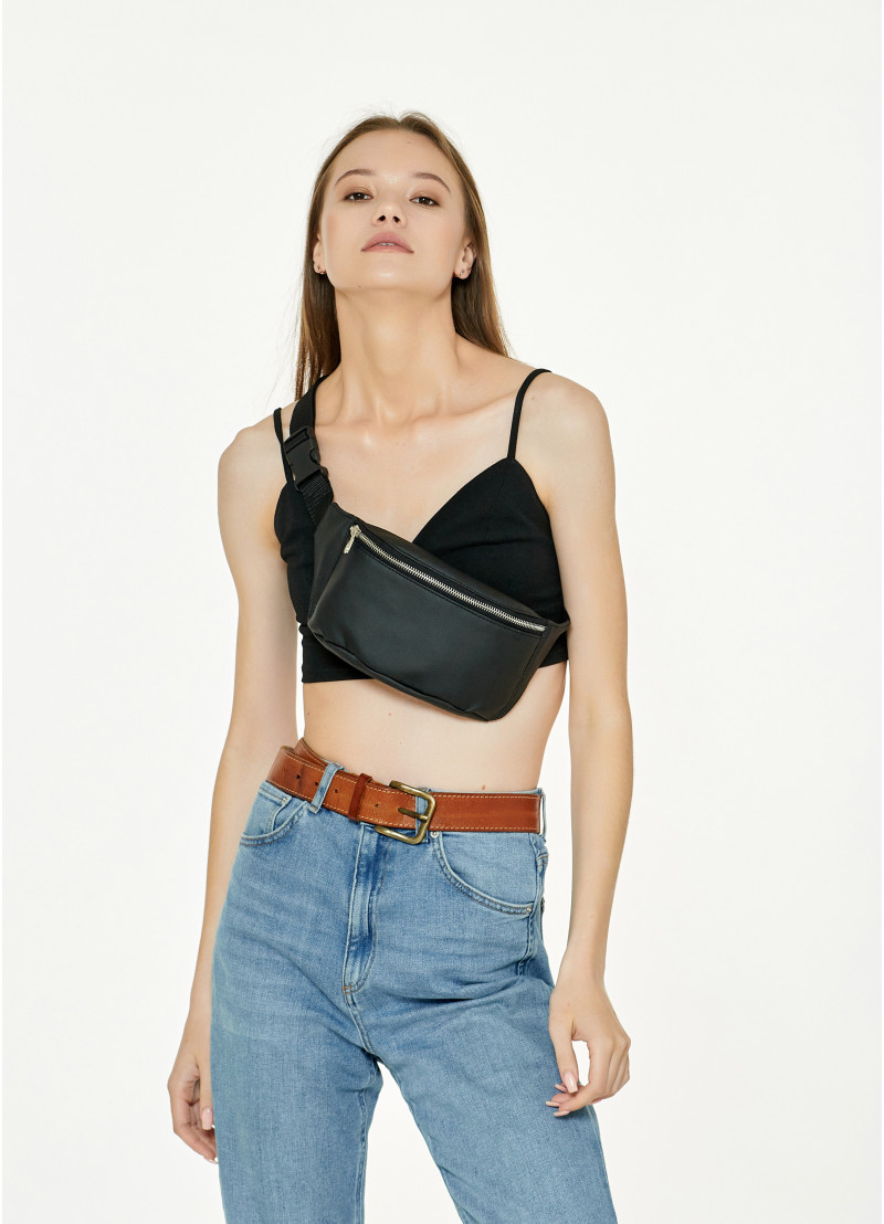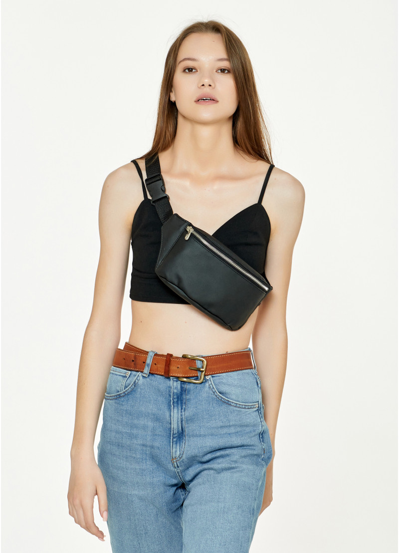 Женская бананка Sambag Tirso Mss черного цвета выполнена из экокожи. В середине подкладка из материала Оксфорд. Подкладка берет на себя нагрузку, благодаря чему срок службы бананки значительно увеличивается. Она имеет металические молнии с металлическими бегунками с фиксаторами, поэтому сумка самостоятельно открываться не будет. Сзади бананка имеет дополнительное отделение на молнии. Внутри сумки несколько карманов. Ремешок регулируется от 86 см до 123 см, благодаря чему ее можно удобно носить как на поясе, так и через плечо.
