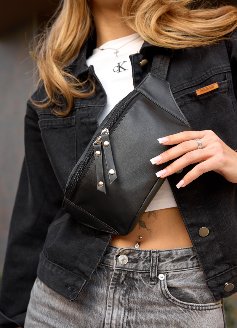 Женская бананка Sambag Tirso Mth черного цвета выполнена из экокожи. В середине подкладка из материала Оксфорд. Подкладка берет на себя нагрузку, благодаря чему срок службы бананки значительно увеличивается. Она имеет качественную пластиковую молнию с металлическими бегунками с фиксаторами, поэтому сумка самостоятельно открываться не будет. Сзади бананка имеет дополнительное отделение на молнии. Внутри сумки несколько карманов. Ремешок регулируется от 86 см до 123 см, благодаря чему ее можно удобно носить как на поясе, так и через плечо.