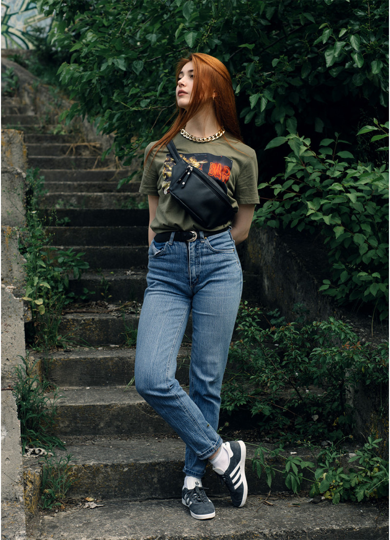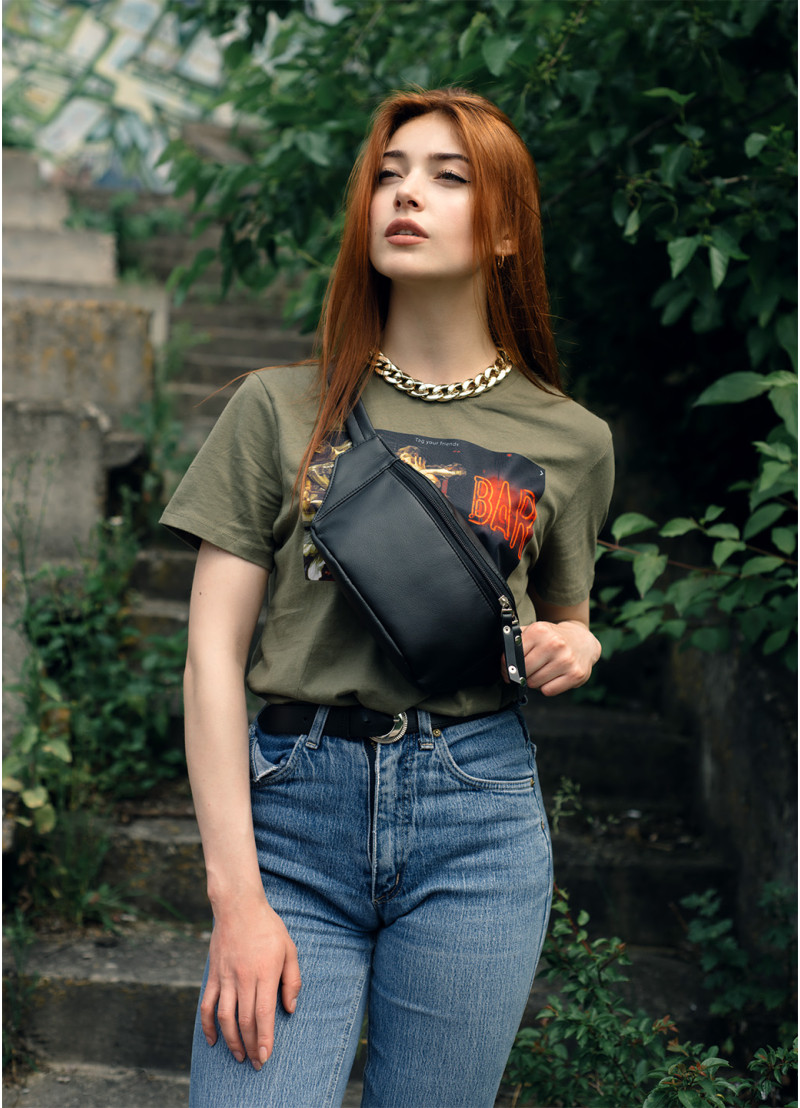 Женская бананка Sambag Tirso Mth черного цвета выполнена из экокожи. В середине подкладка из материала Оксфорд. Подкладка берет на себя нагрузку, благодаря чему срок службы бананки значительно увеличивается. Она имеет качественную пластиковую молнию с металлическими бегунками с фиксаторами, поэтому сумка самостоятельно открываться не будет. Сзади бананка имеет дополнительное отделение на молнии. Внутри сумки несколько карманов. Стильный ремешок из экокожи, прикрепленный к бокам кожаными треугольниками. Ремешок регулируется от 86 см до 123 см, благодаря чему ее можно удобно носить как на поясе, так и через плечо.
