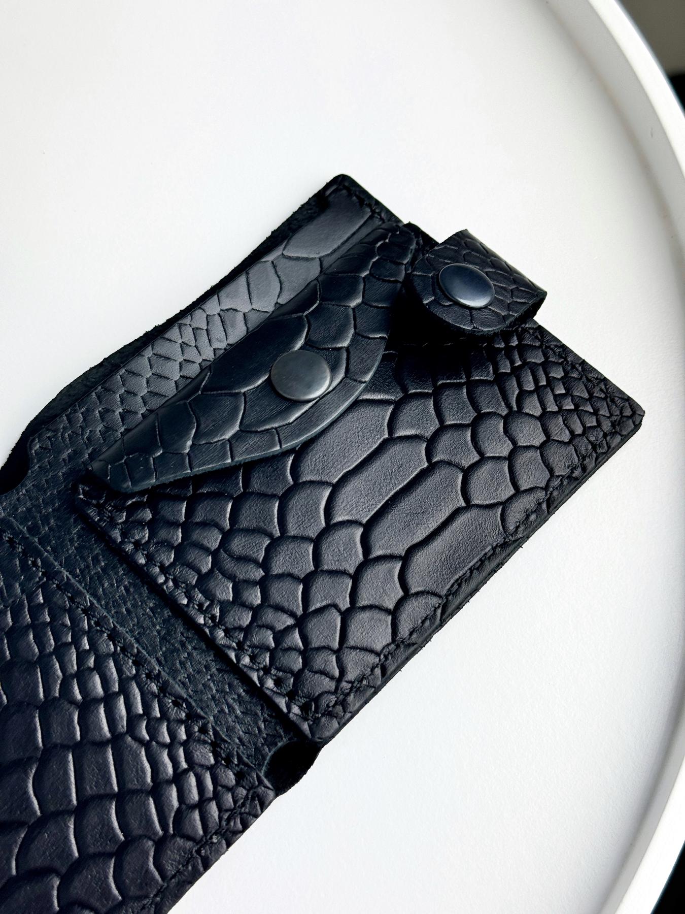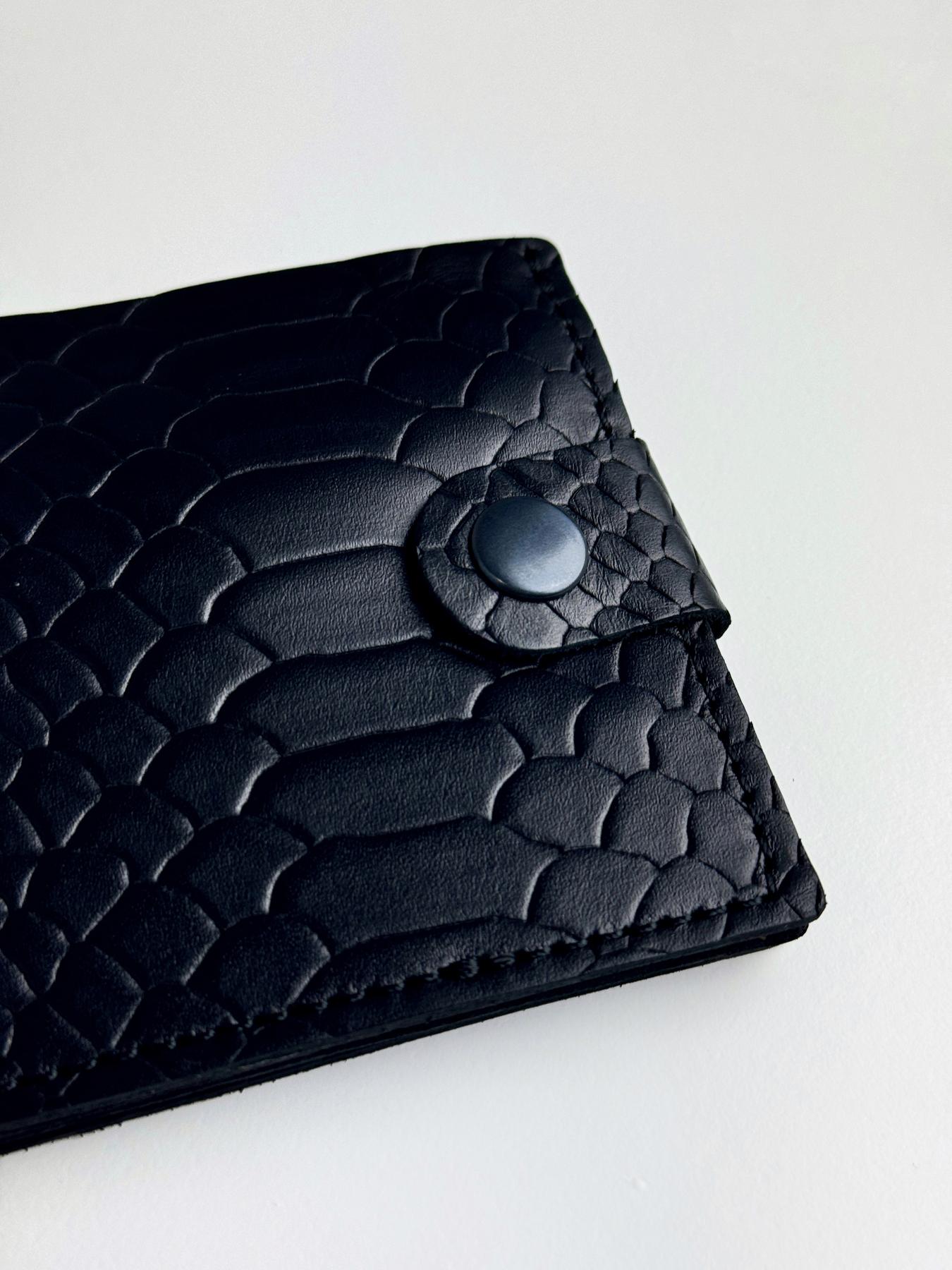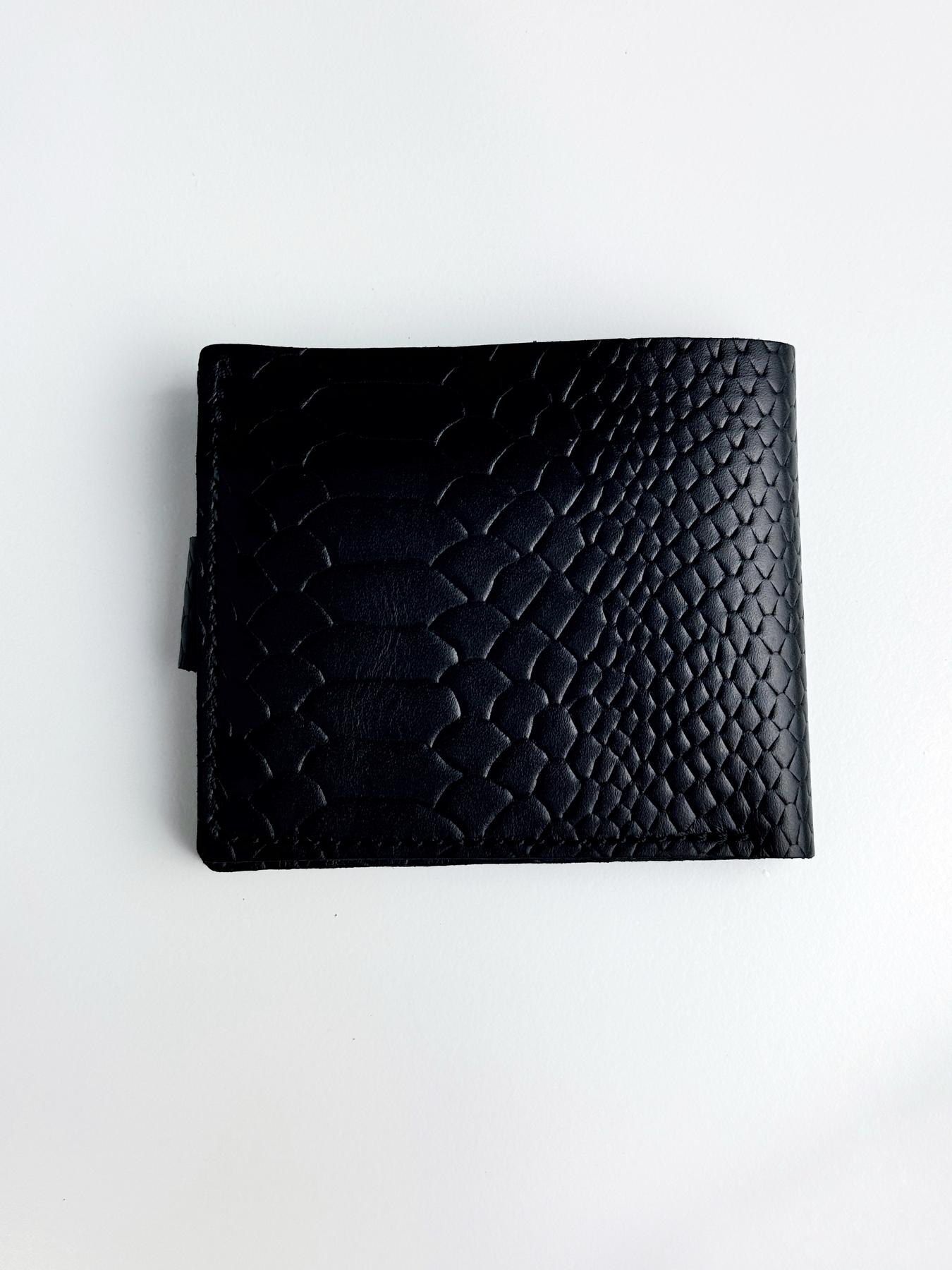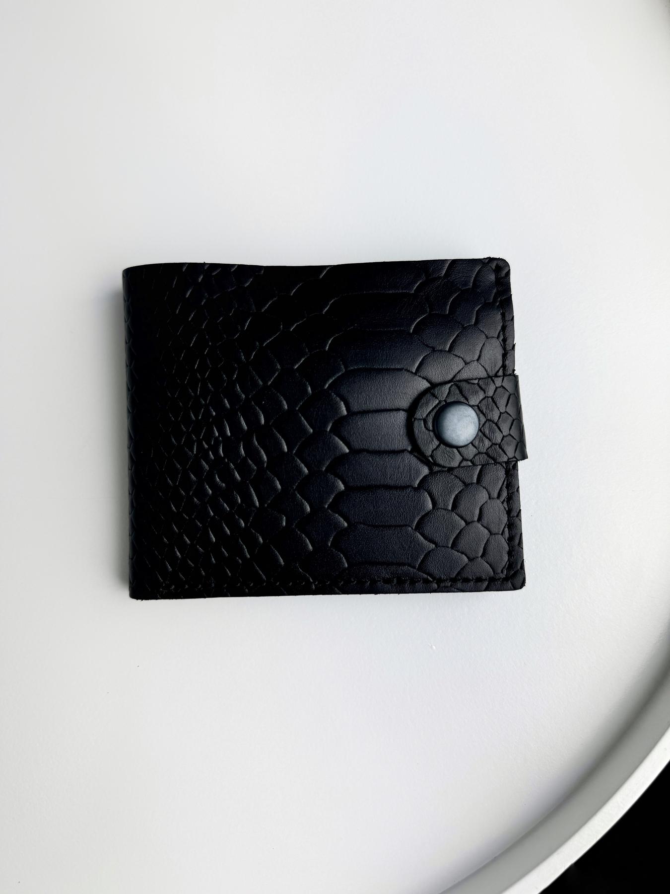 Мужской кошелек бифолд Skill черного цвета выполнен из натуральной кожи. Кошелек застегивается металлической кнопкой, имеет основное отделение для купюр, три ячейки для карточек и одно отделение для монет на кнопке.