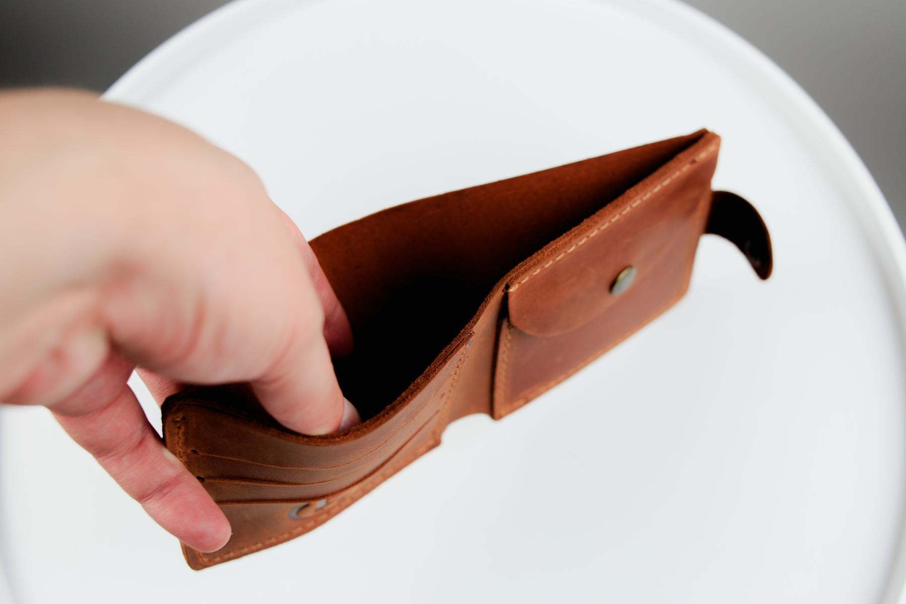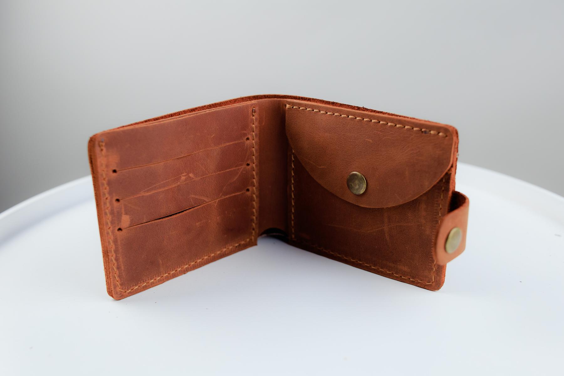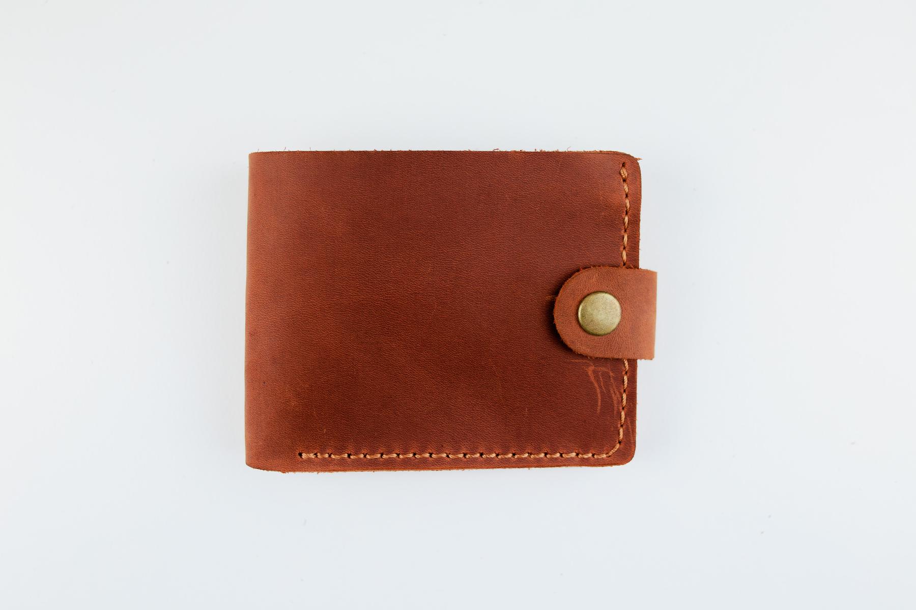 Мужской кошелек Skill коричневого цвета выполнен из натуральной кожи. Кошелек застегивается металлической кнопкой, имеет основное отделение для купюр, 4 ячейки для карточек и одно отделение для монет на кнопке.