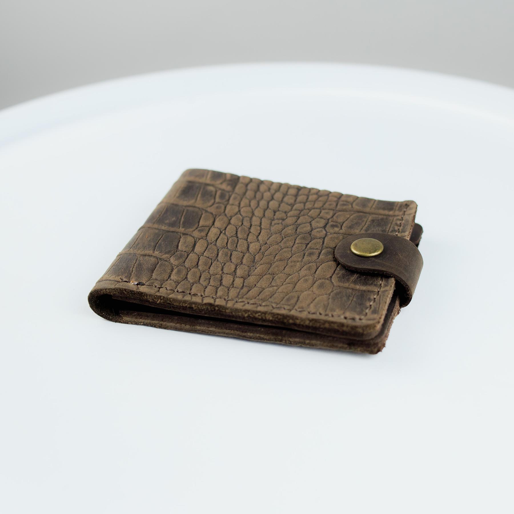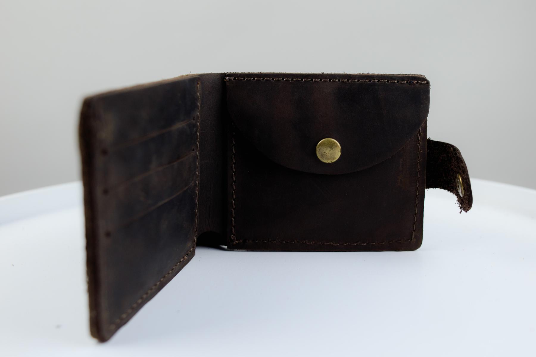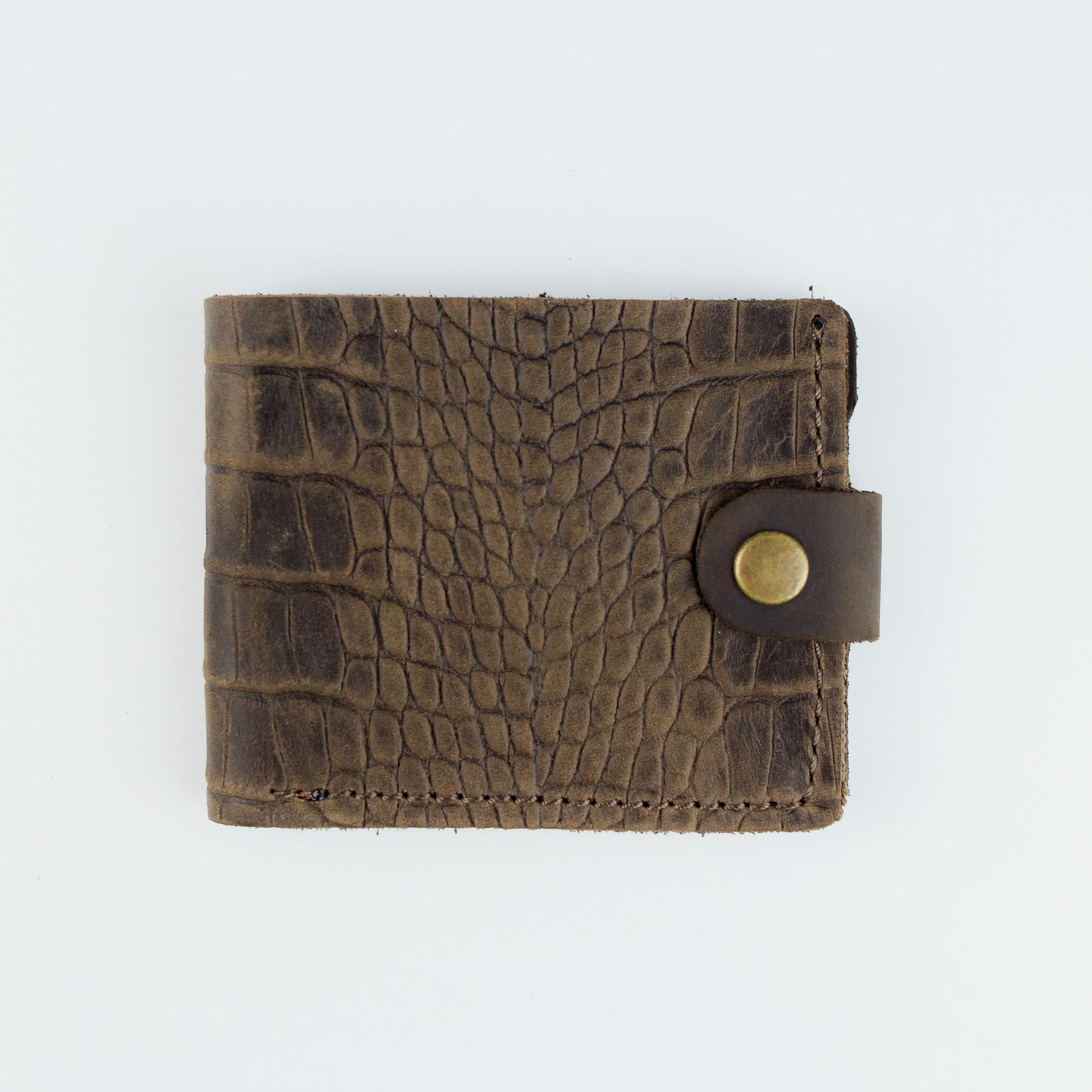 Мужской кошелек Skill коричневого цвета выполнен из натуральной кожи. Кошелек застегивается металлической кнопкой, имеет основное отделение для купюр, 4 ячейки для карточек и одно отделение для монет на кнопке.