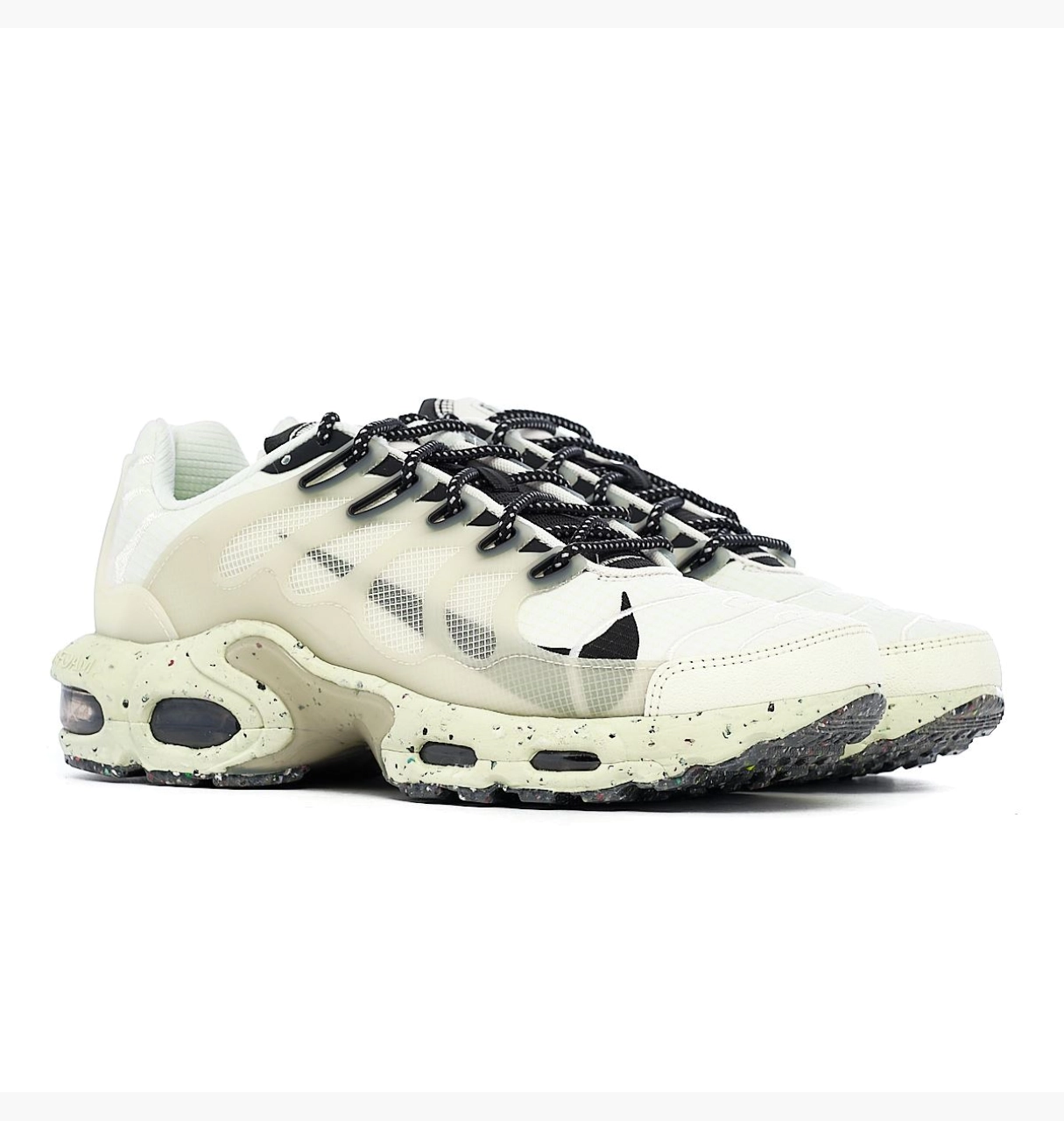 Кроссовки Nike Air Max Terrascape Plus Sail Sea Glass — это усовершенствованная версия культовой модели Air Max Plus, адаптированная для повседневного ношения в городских условиях. Данная обувь славится тем, что ее верх выполнен из переработанных материалов, делая модель более экологичной.
