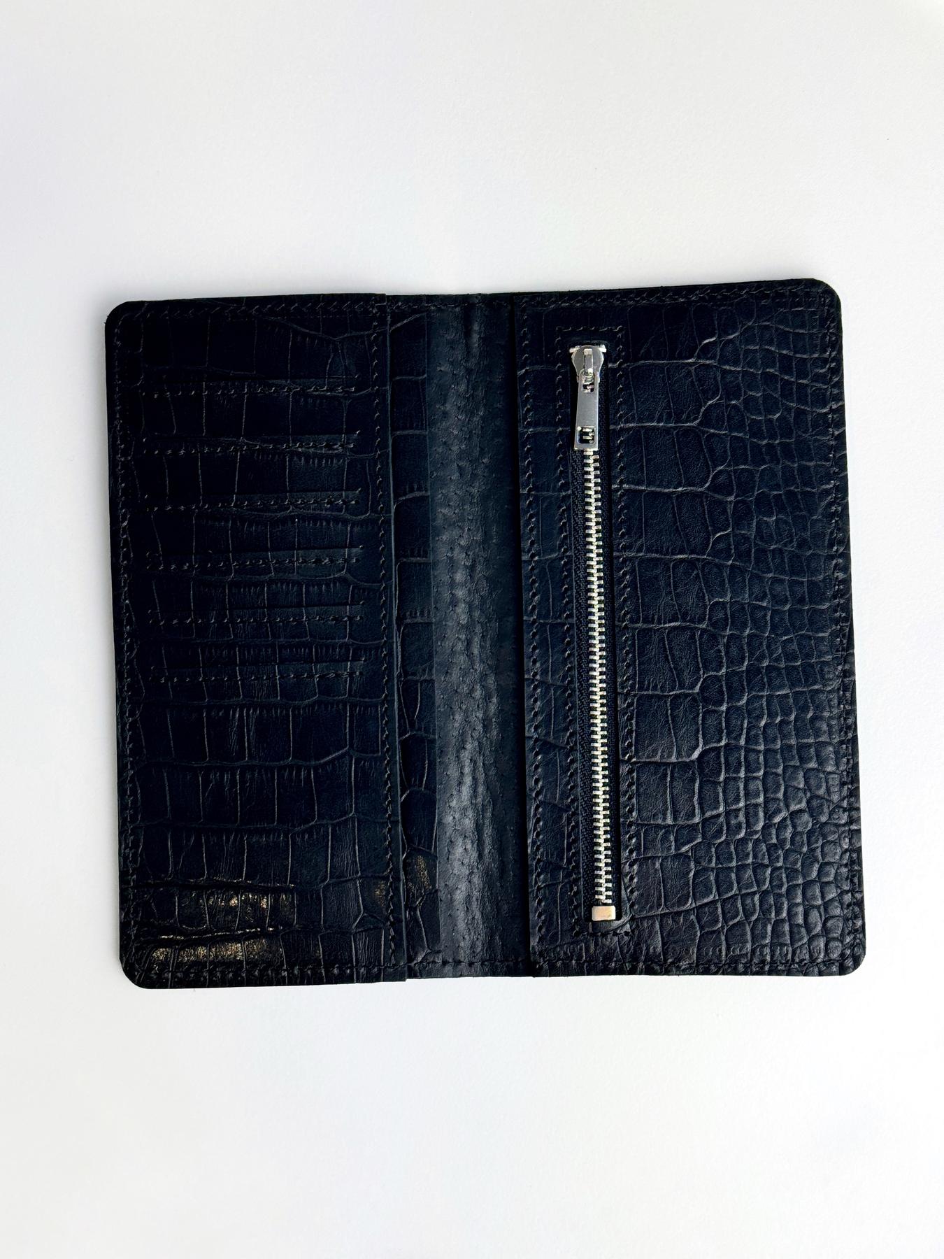 Портмоне мужское Skill черного цвета изготовлено из натуральной кожи. Портмоне имеет три основных отделения для купюр, 6 ячеек для карточек и дополнительное отделение на металлической молнии.