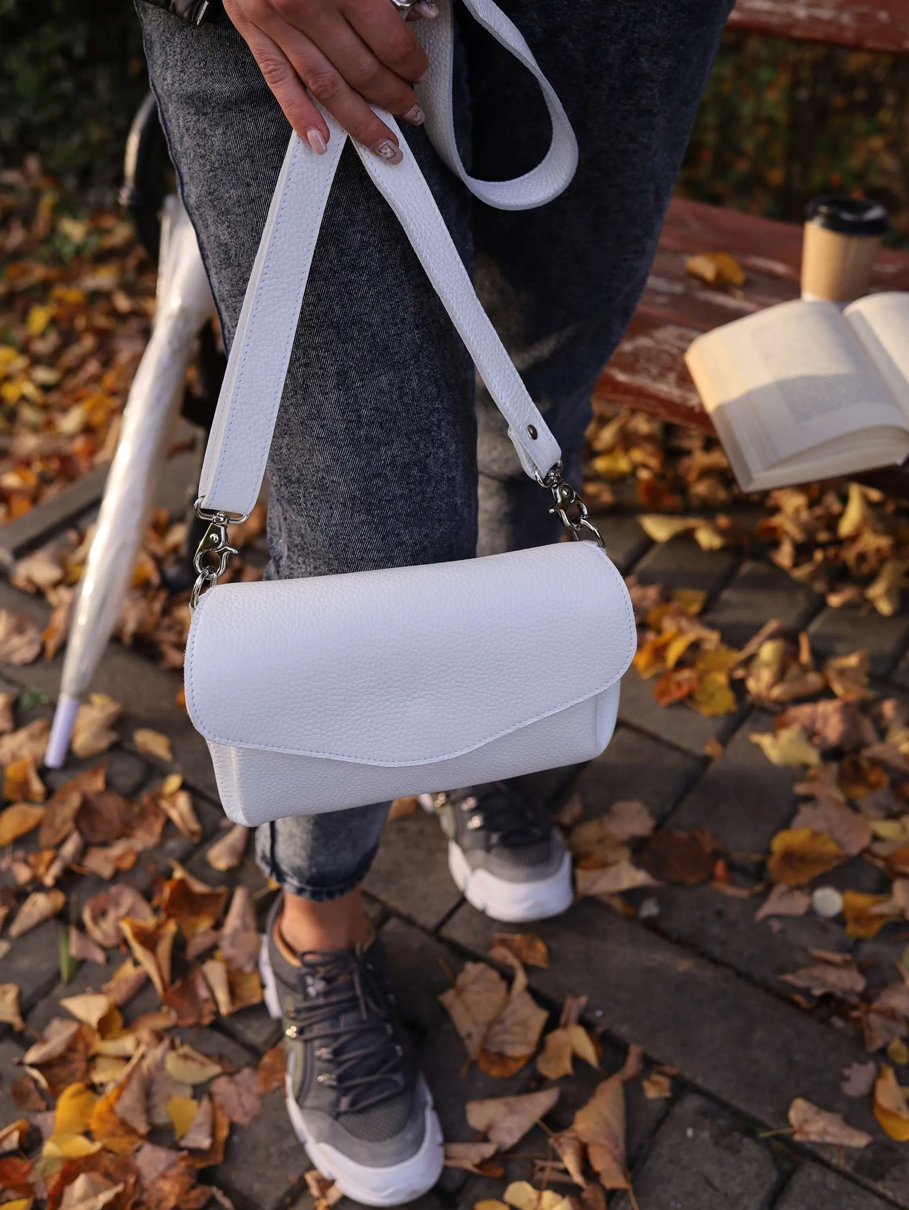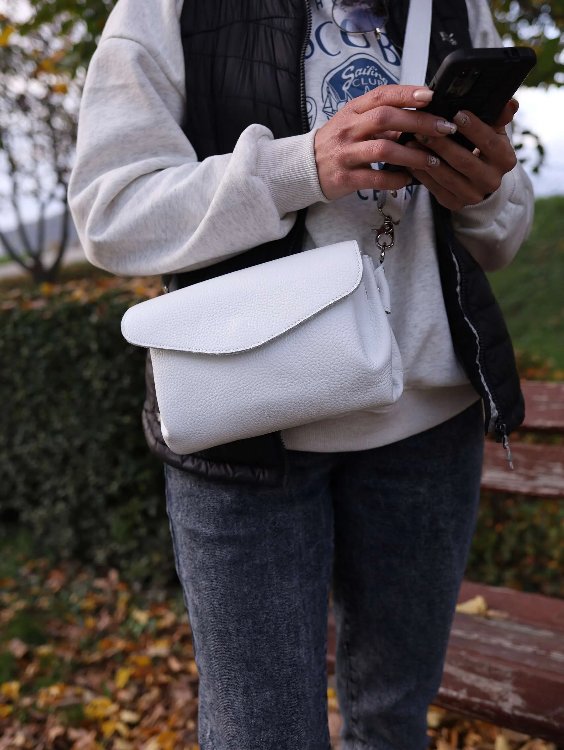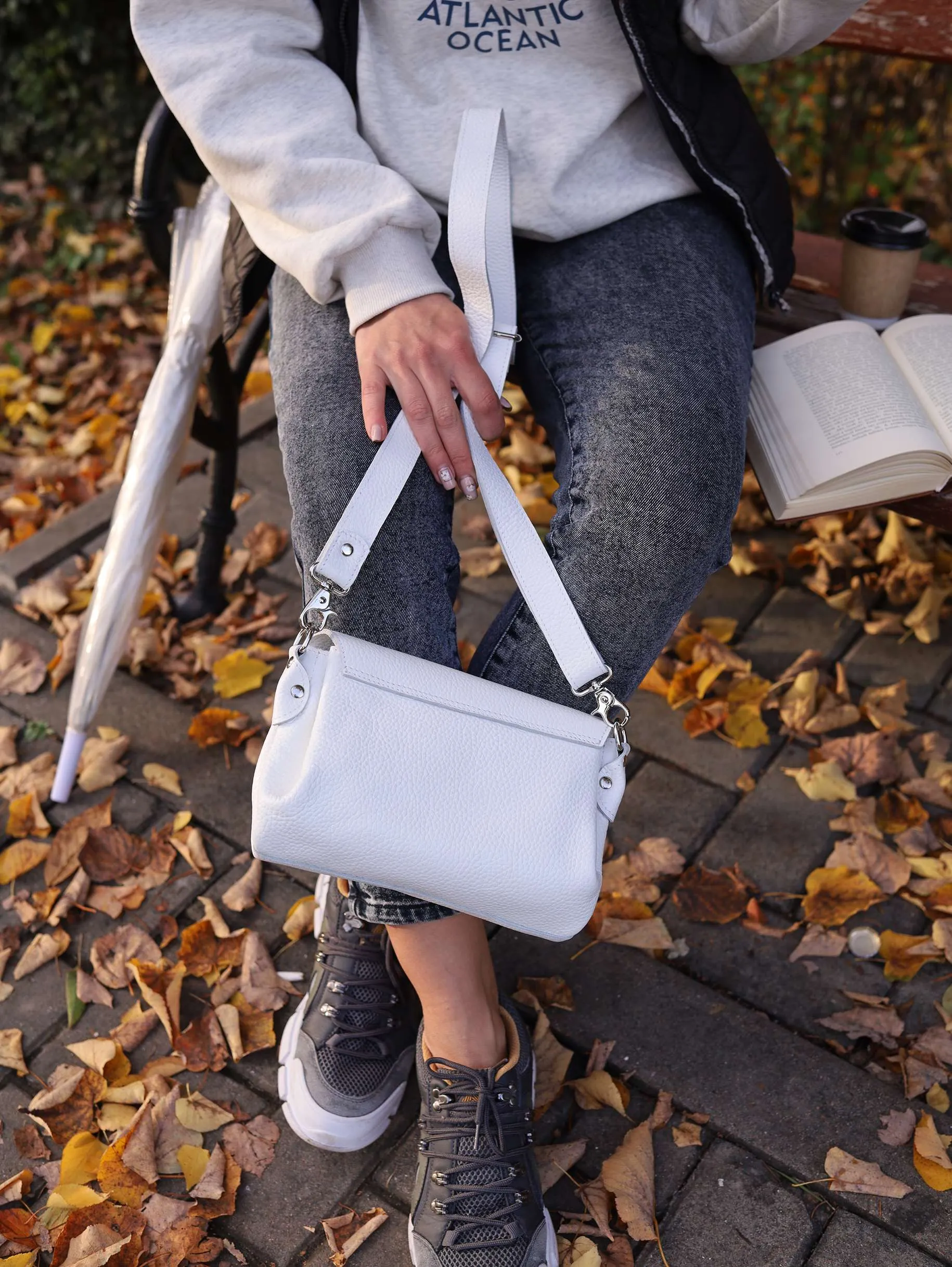 Стандартная женская сумочка кросс-боди Miros Женева белого цвета выполнена из натуральной кожи. Клапан сумки закрывается на кнопку. Основное отделение разделено карманом с молнией на две части. Ремешок крепится металлическими карабинами, а его длина регулируется. Эта сумочка представлена во многих цветах, поэтому вы сможете подобрать вариант под любой образ.