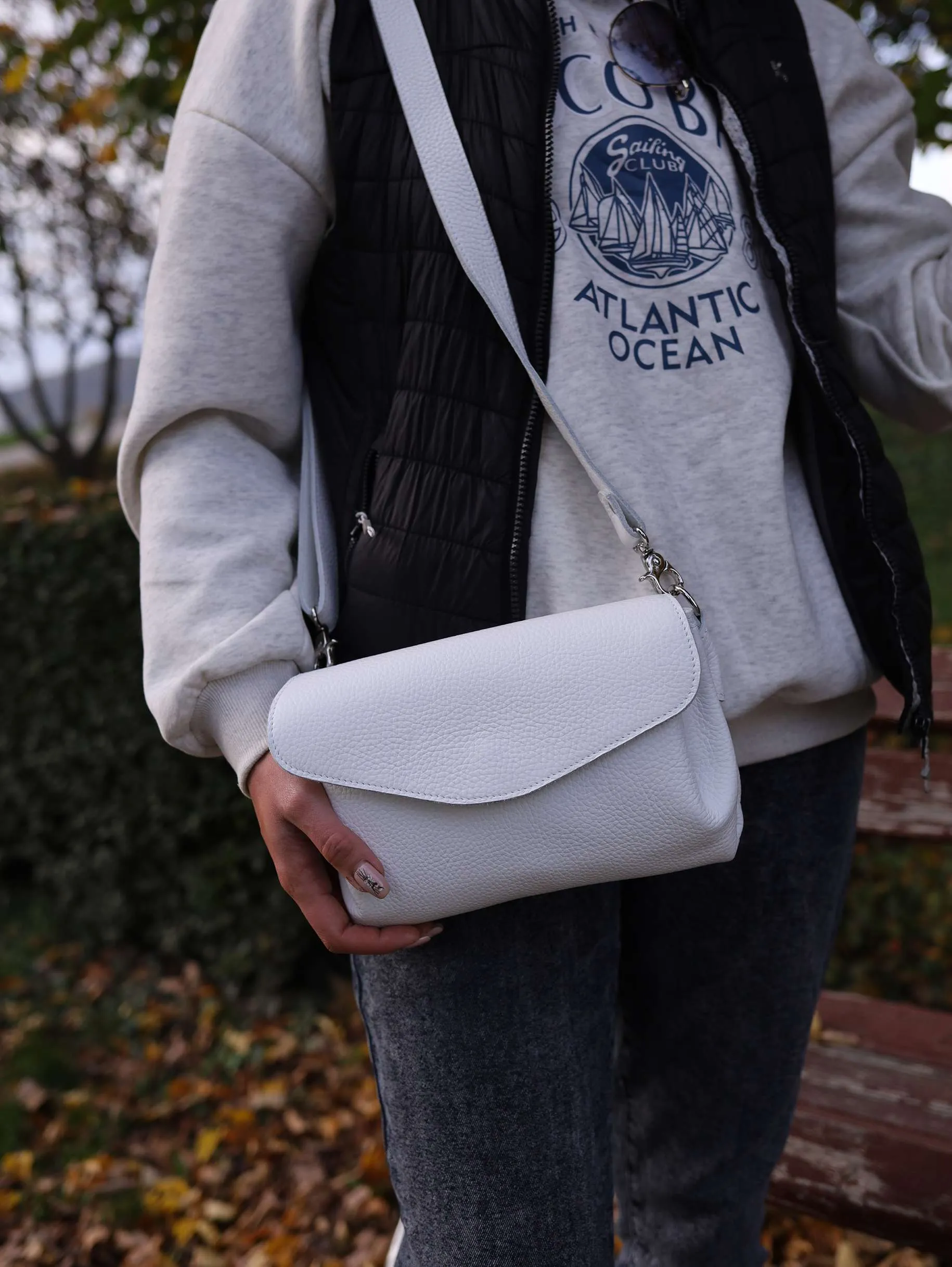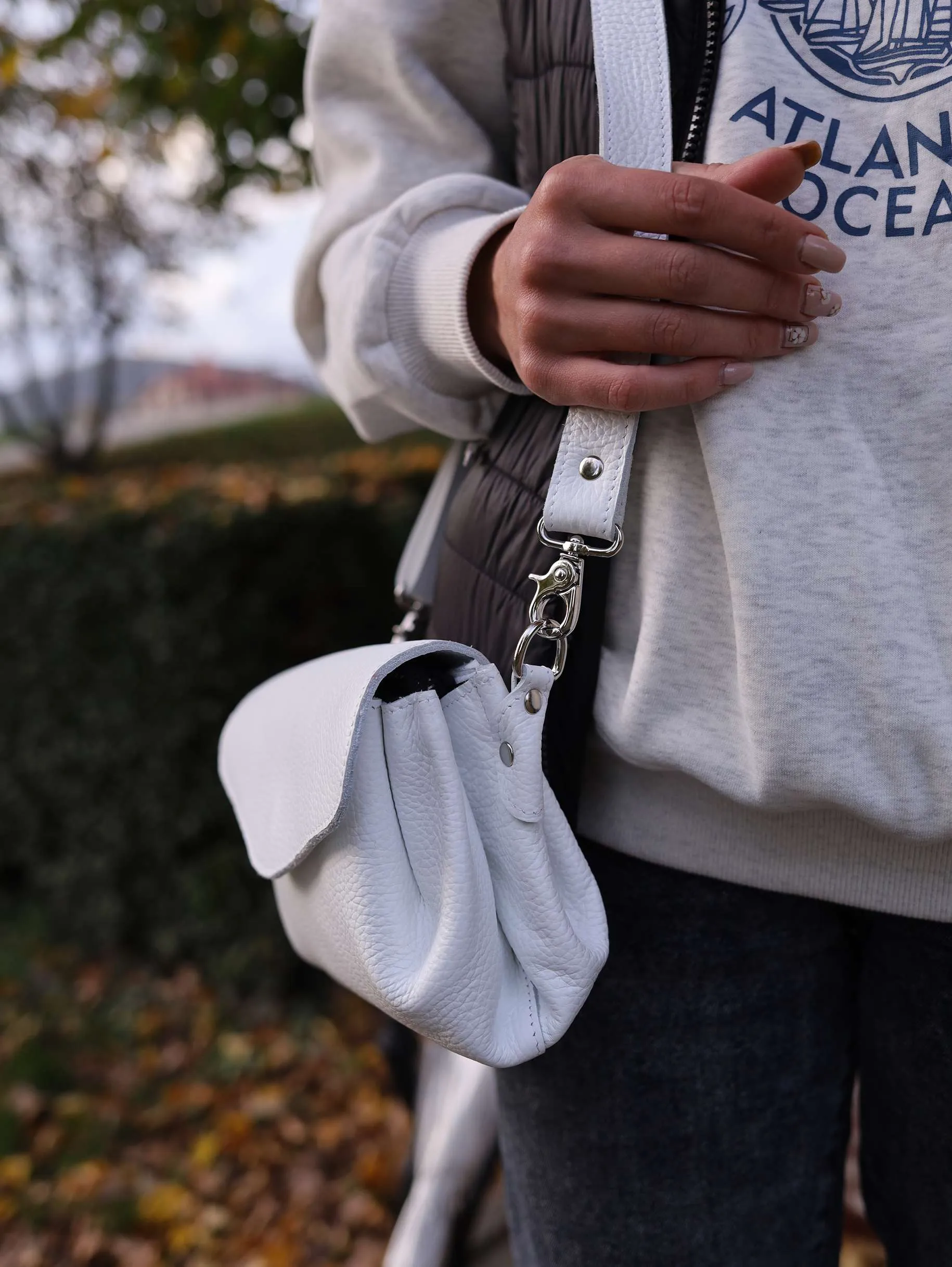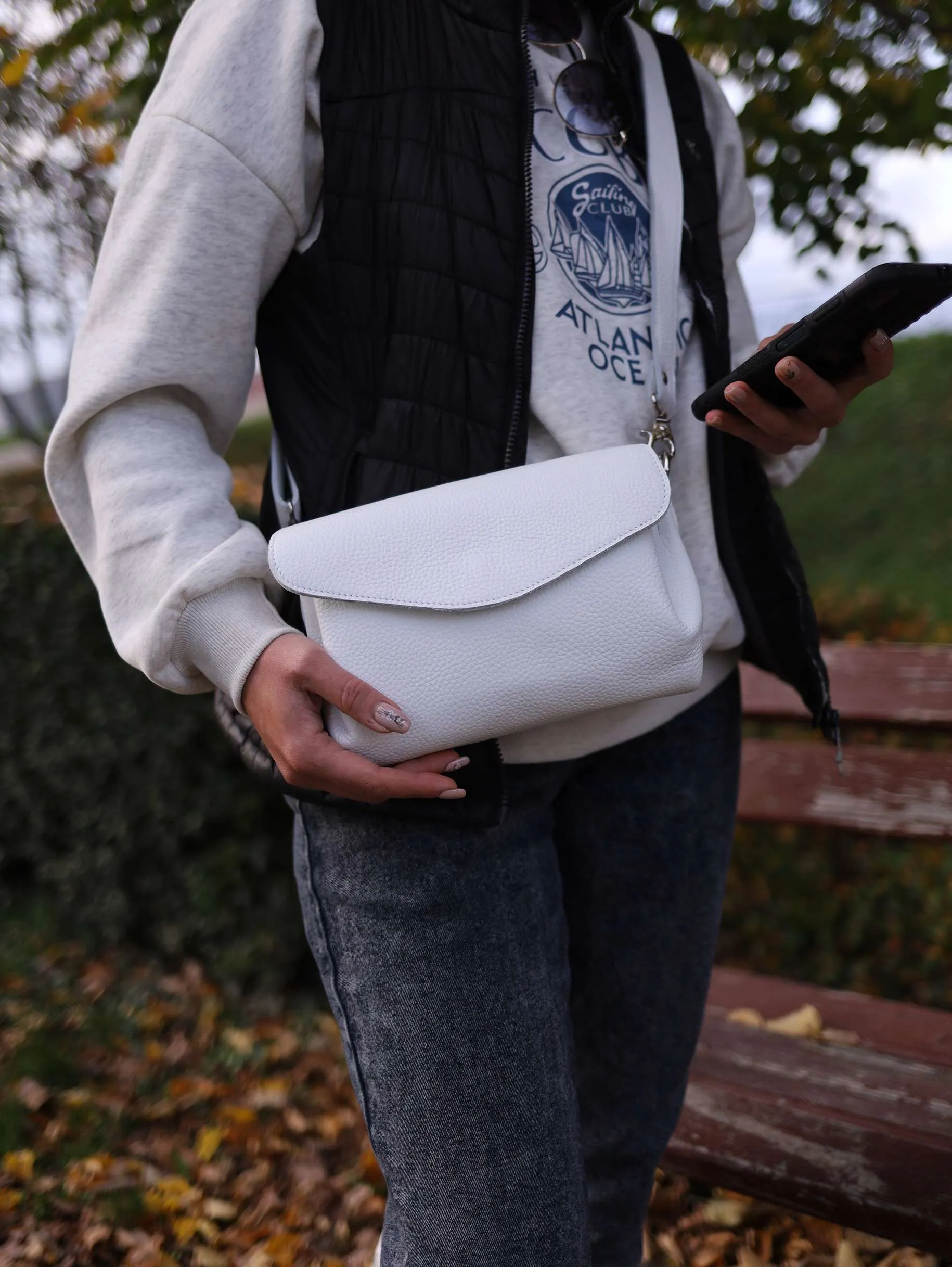 Стандартная женская сумочка кросс-боди Miros Женева белого цвета выполнена из натуральной кожи. Клапан сумки закрывается на кнопку. Основное отделение разделено карманом с молнией на две части. Ремешок крепится металлическими карабинами, а его длина регулируется. Эта сумочка представлена во многих цветах, поэтому вы сможете подобрать вариант под любой образ.