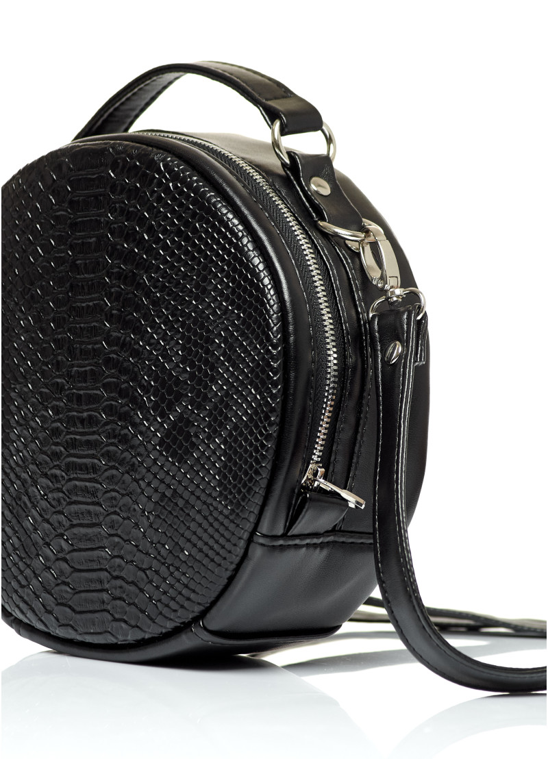 Круглая женская сумка кросс-боди Sambag Bale черного цвета выполнена из качественной экокожи. Имеет одно основное отделение на молнии внутри которого два кармана, один открытый и один на молнии. Подкладка из материала Оксфорд. Также есть дополнительный внешний карман с тыльной стороны на молнии. Сумка оснащена металлической фурнитурой. Дно твердое укрепленное. Ручка и ремешок для ношения через плечо из надежной экокожи. Ремешок регулируется и крепится к сумке на карабины, поэтому его при необходимости можно снять.