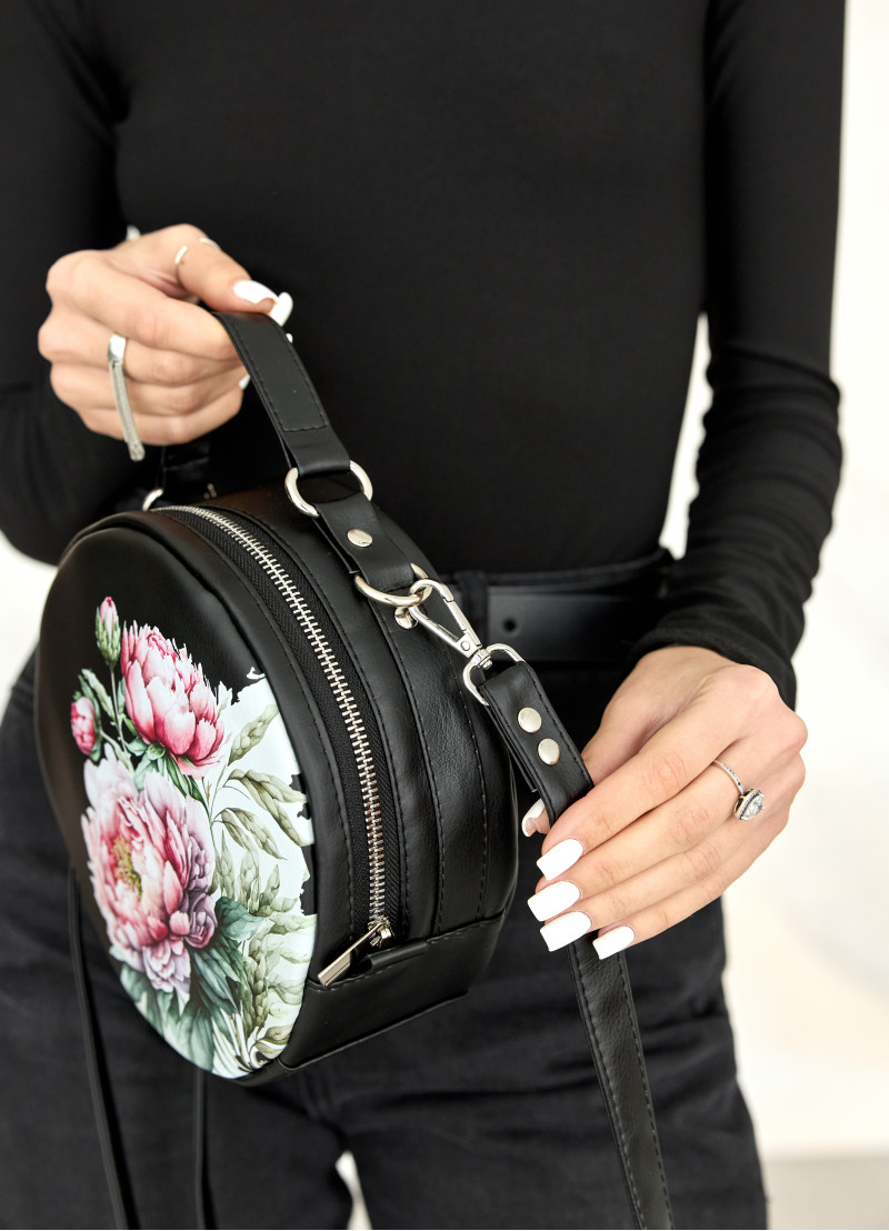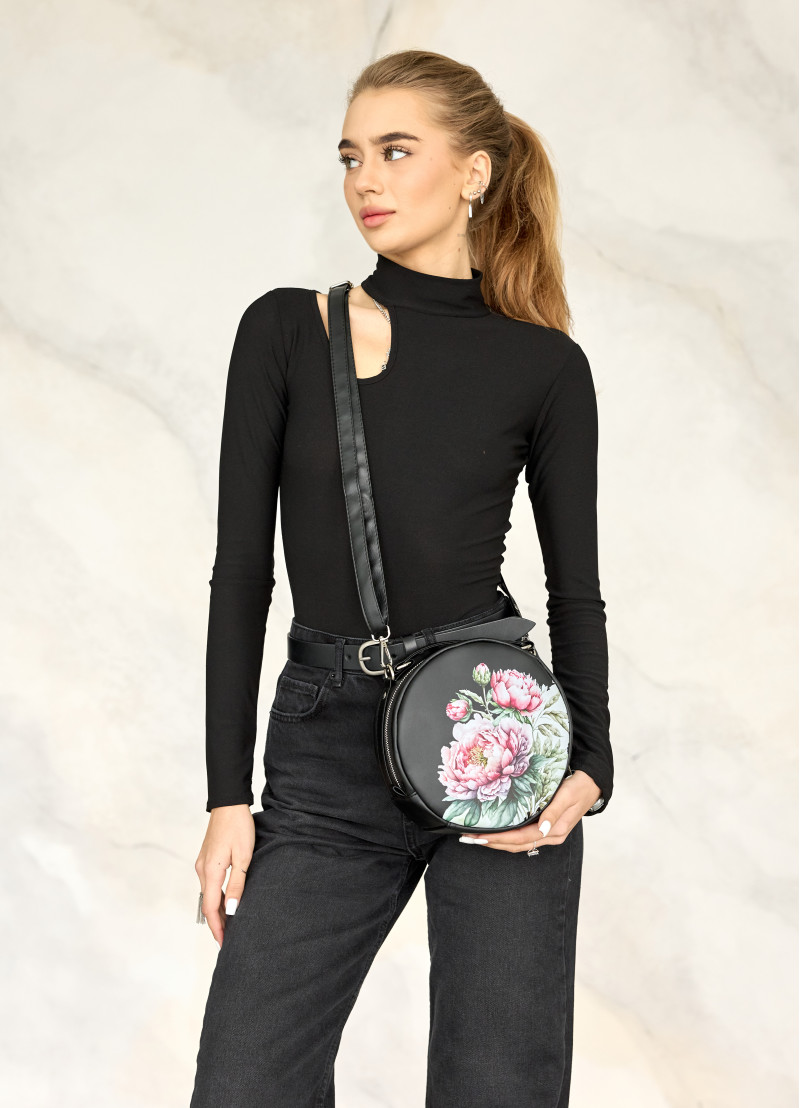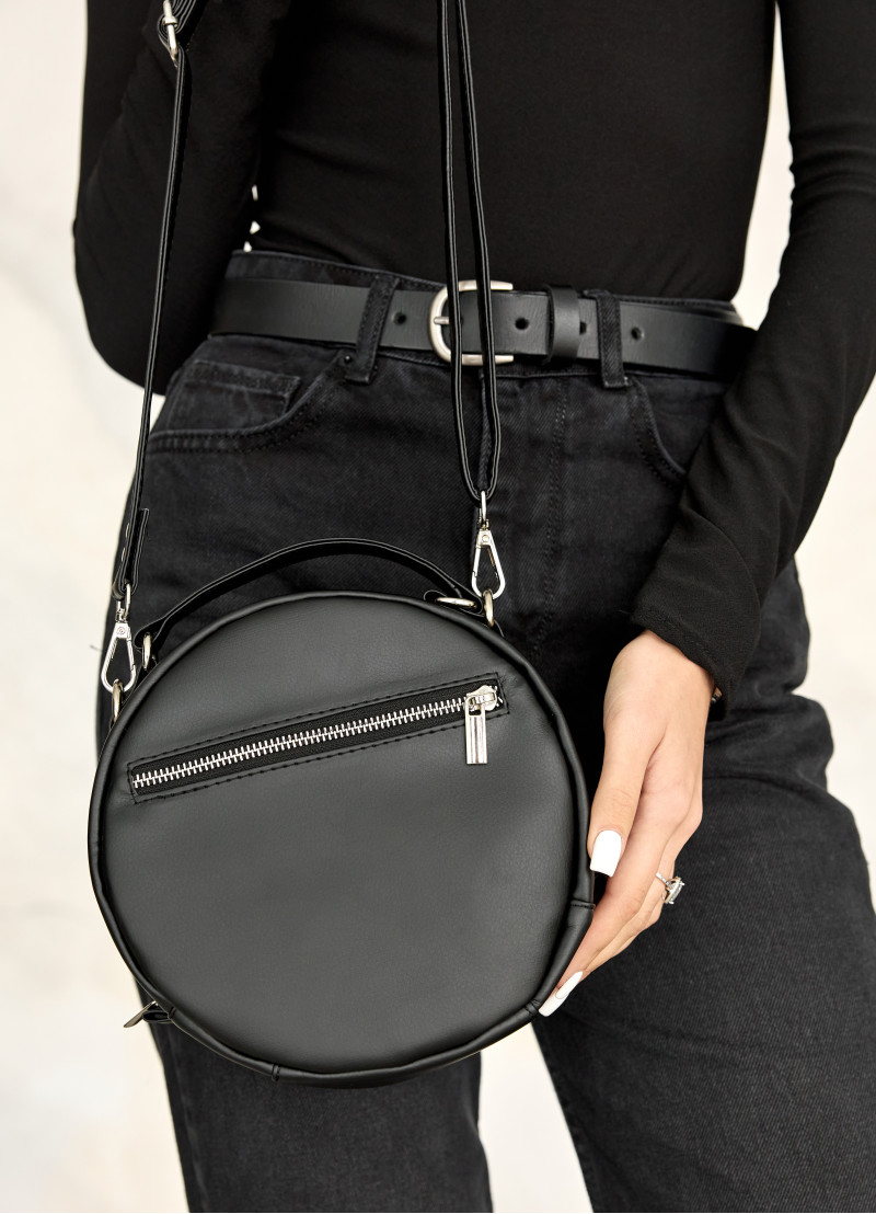Круглая женская сумка кросс-боди Sambag Bale Mzn черного цвета выполнена из качественной экокожи. Имеет одно основное отделение на молнии внутри которого два кармана, один открытый и один на молнии. Подкладка из материала Оксфорд. Также есть дополнительный внешний карман с тыльной стороны на молнии. Сумка оснащена металлической фурнитурой. Дно твердое укрепленное. Ручка и ремешок для ношения через плечо из надежной экокожи. Ремешок регулируется и крепится к сумке на карабины, поэтому его при необходимости можно снять.