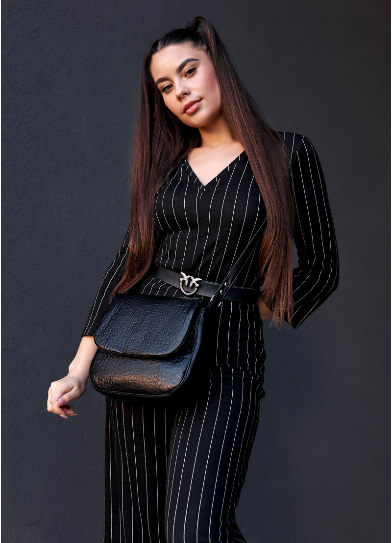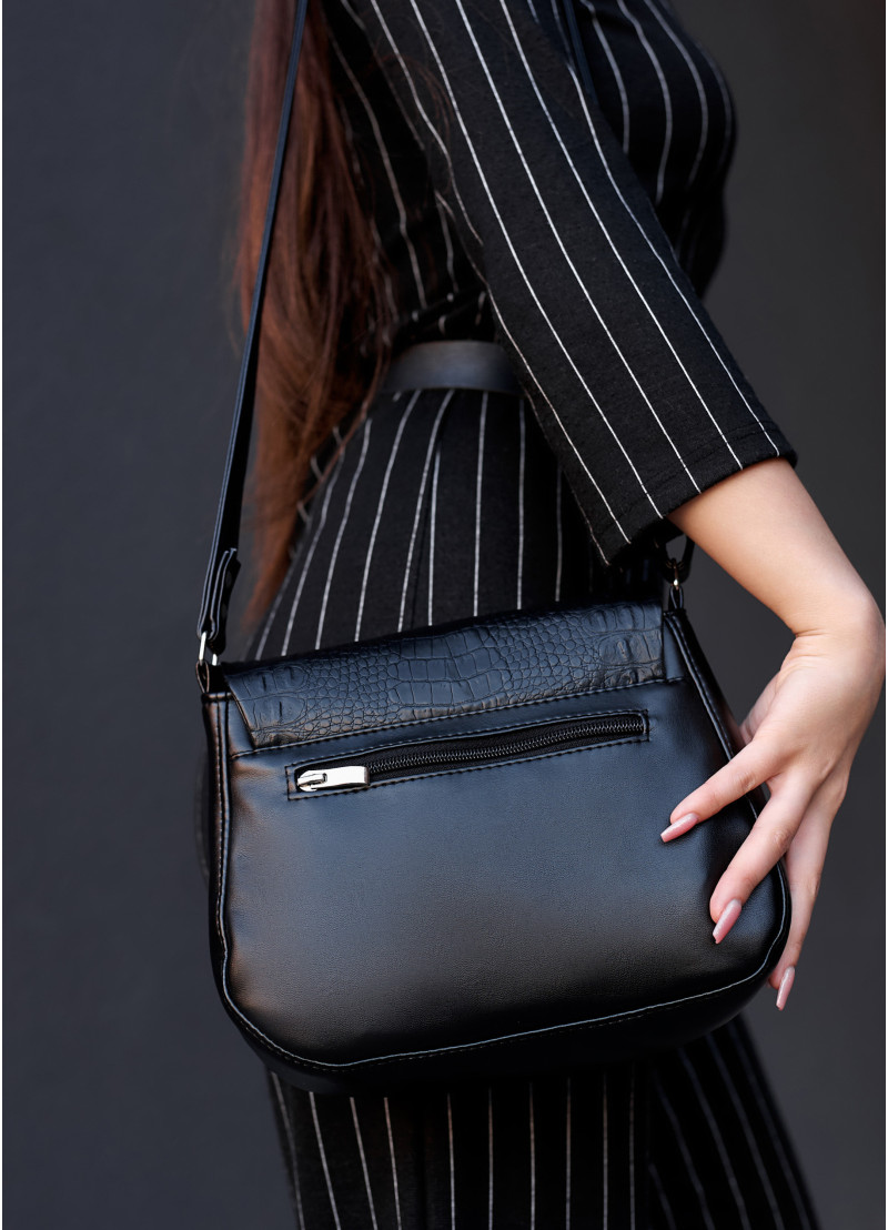 Прямоугольная женская сумка кросс-боди Sambag Rose Bzn черного цвета изготовлена из качественной экокожи повышенного уровня износостойкости. Кожа эластичная, водоотталкивающая и устойчивая к выцветанию. Сумочка застегивается на магнитный клапан. Основное отделение на молнии и внутри разделено на два отделения. Подкладка из материала Оксфорд. Также есть дополнительный внешний карман с тыльной стороны на молнии. Сумка имеет металлическую фурнитуру. Ремешок регулируется, а его максимальная длина составляет 146 см.
