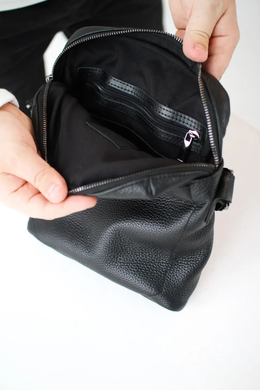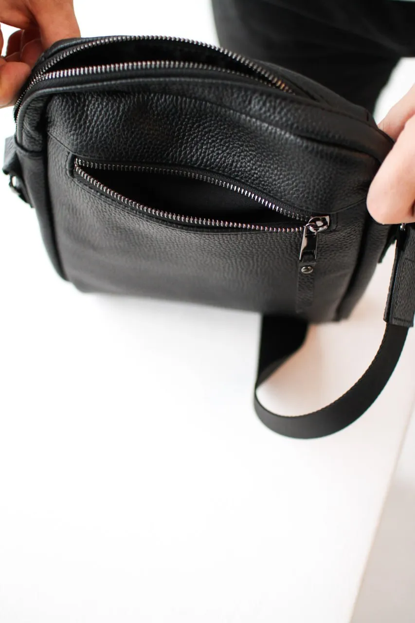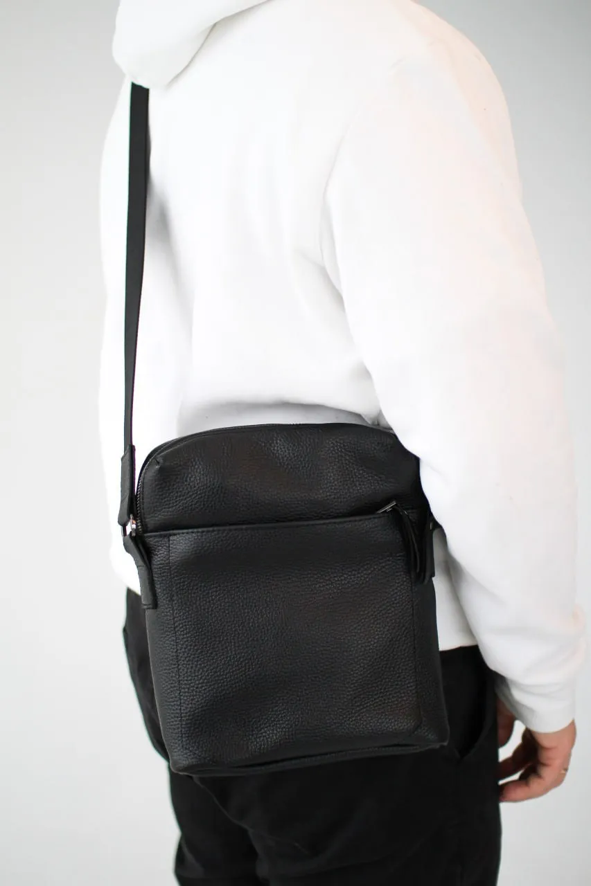 Мужская сумка мессенджер Skill Tablet черного цвета выполнена из натуральной кожи. Сумка вместительная и имеет много отделений. Основное отделение на металлической молнии, внутри один открытый карман и карман на молнии. Дополнительные два кармана с лицевой и тыльной стороны на молнии. Ремешок регулируется, максимальная длина 145 см. Сумка мессенджер подойдет вам, если нужно всегда иметь с собой мелкие вещи такие как телефон, ключи, документы и т.д.