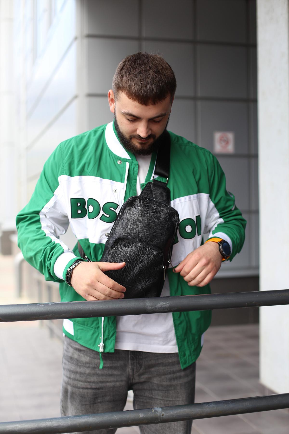 Мужская слинг сумка Skill Kved черного цвета выполнена из натуральной кожи. Основное отделение на металлической молнии, внутри один открытый карман. Дополнительное отделение с лицевой стороны на молнии. Снизу по бокам два металлических кольца за которые можно цеплять ремешок и носить сумку в разных положениях. Максимальная длина ремешка 140 см. Слинг сумка подойдет мужчинам, которые постоянно в движении и при этом всегда хотят выглядеть стильно.