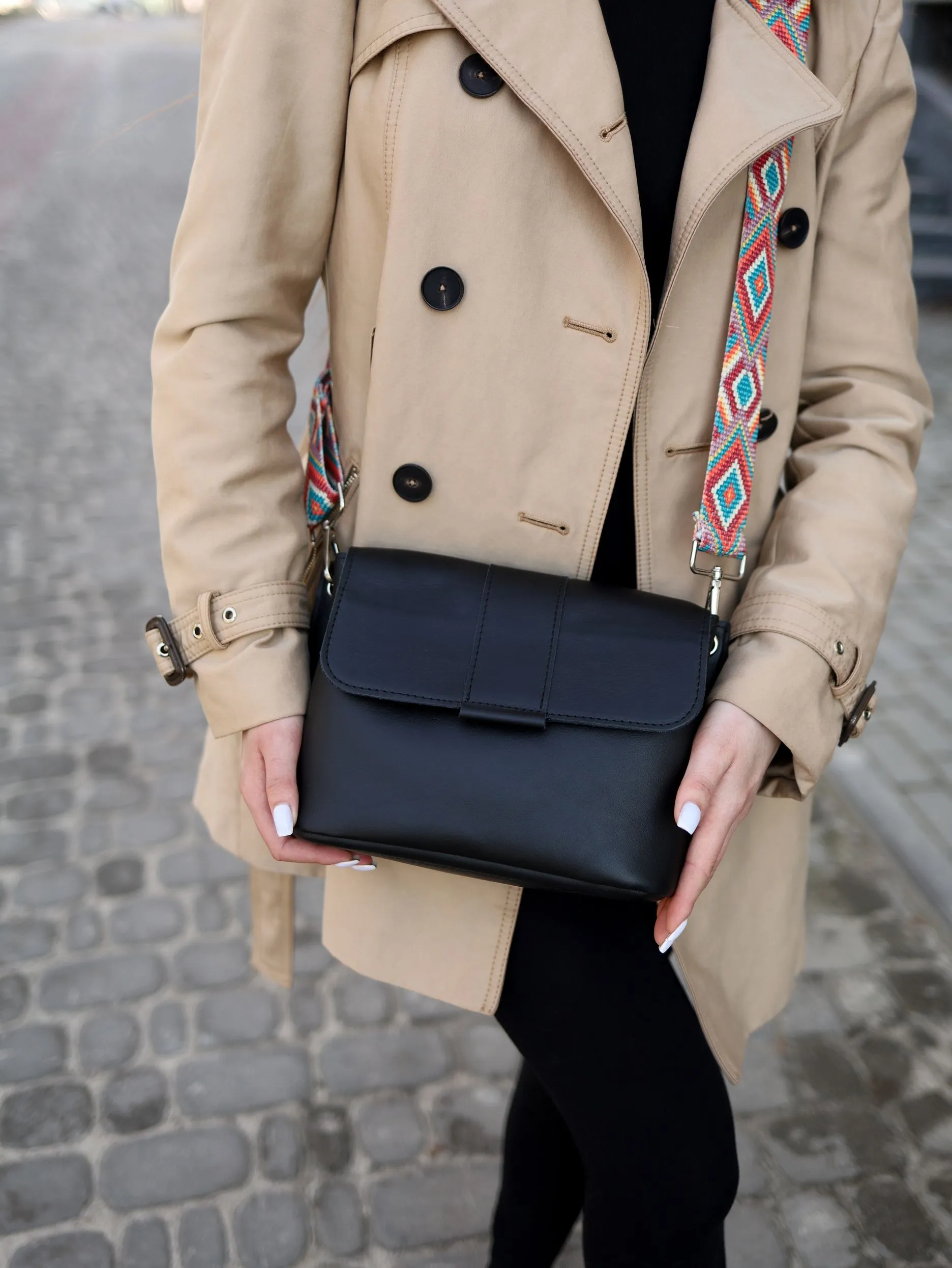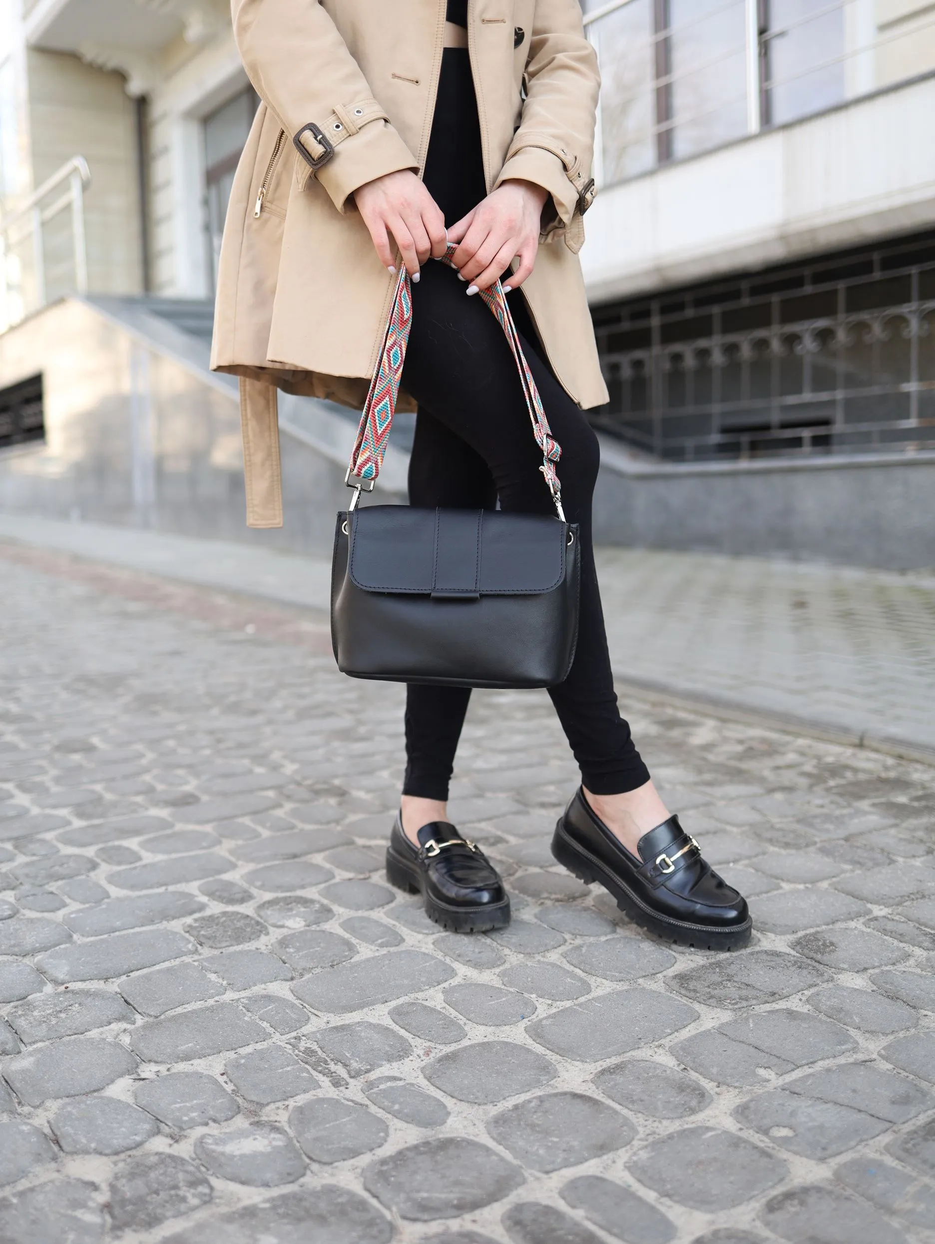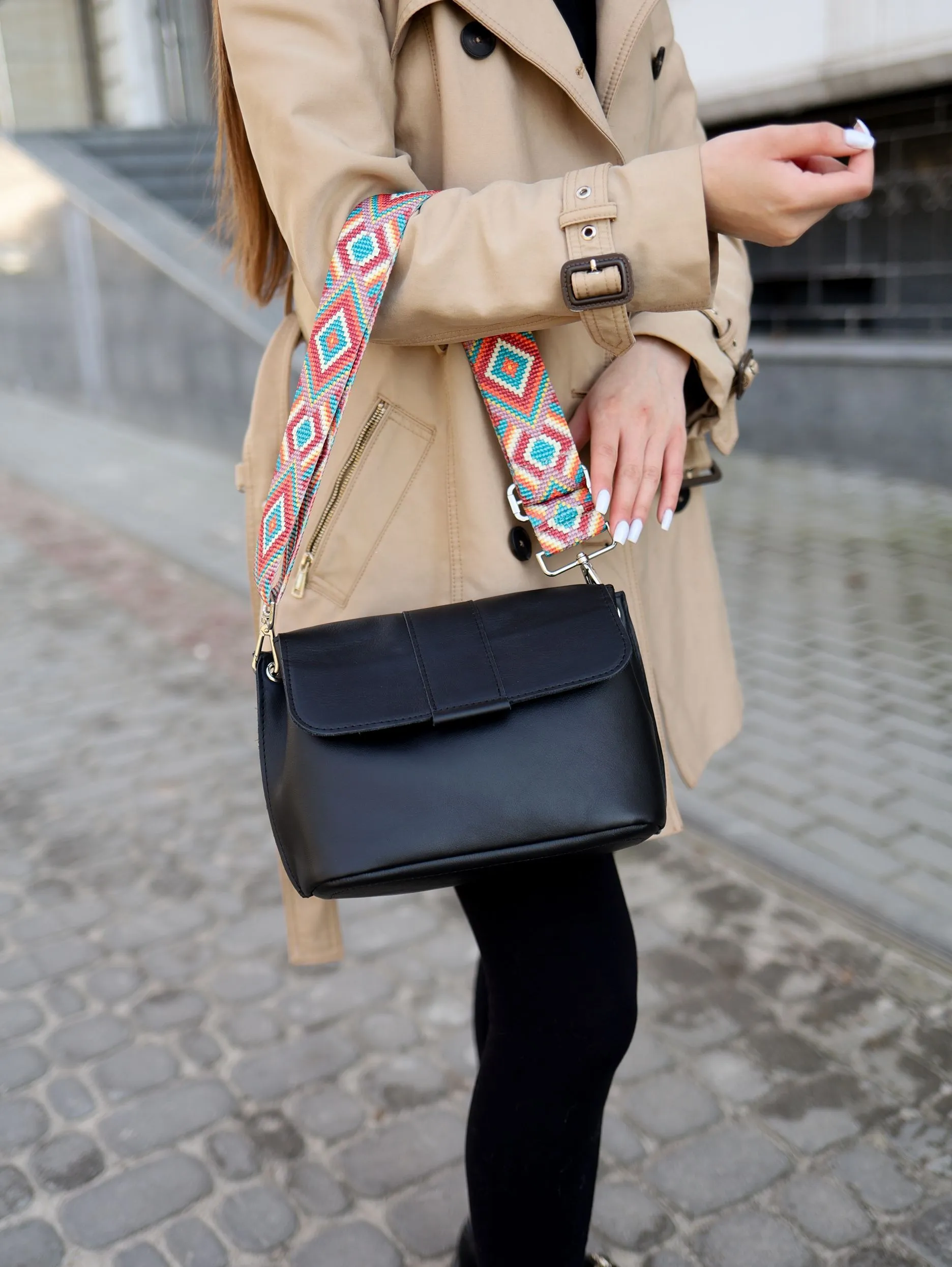 Женская сумка кросс-боди Miros Марокко черного цвета выполнена из натуральной кожи. Сумка снабжена качественной металлической фурнитурой. Есть три отделения, одно открытое, одно на металлической молнии и одно на кнопке. Закрывается сумка также на кнопку. Ремешок регулируется от 80 см до 115 см. Благодаря такой стильной дамской сумочке вы будете выделяться среди толпы и иметь с собой всегда все необходимое.