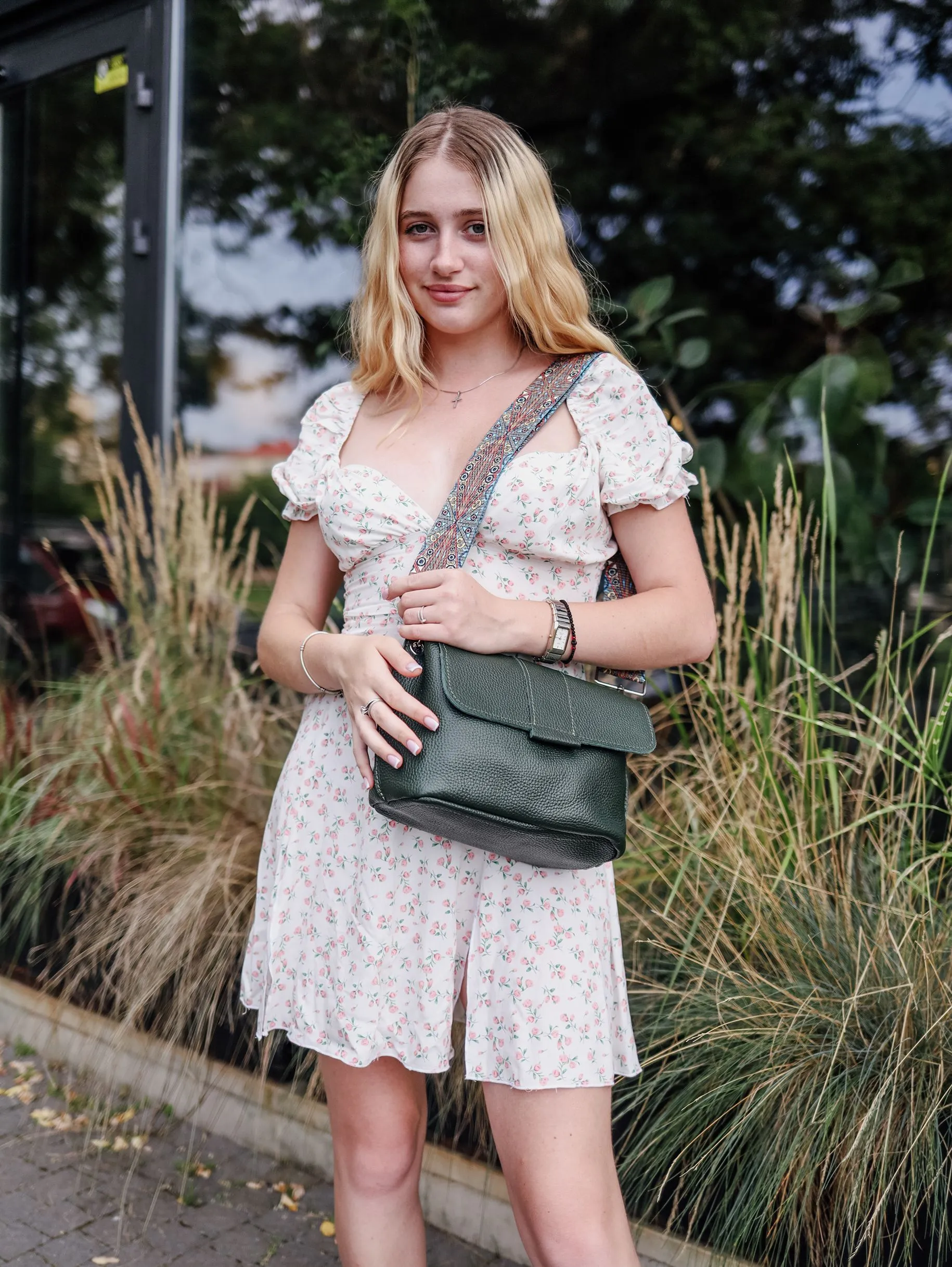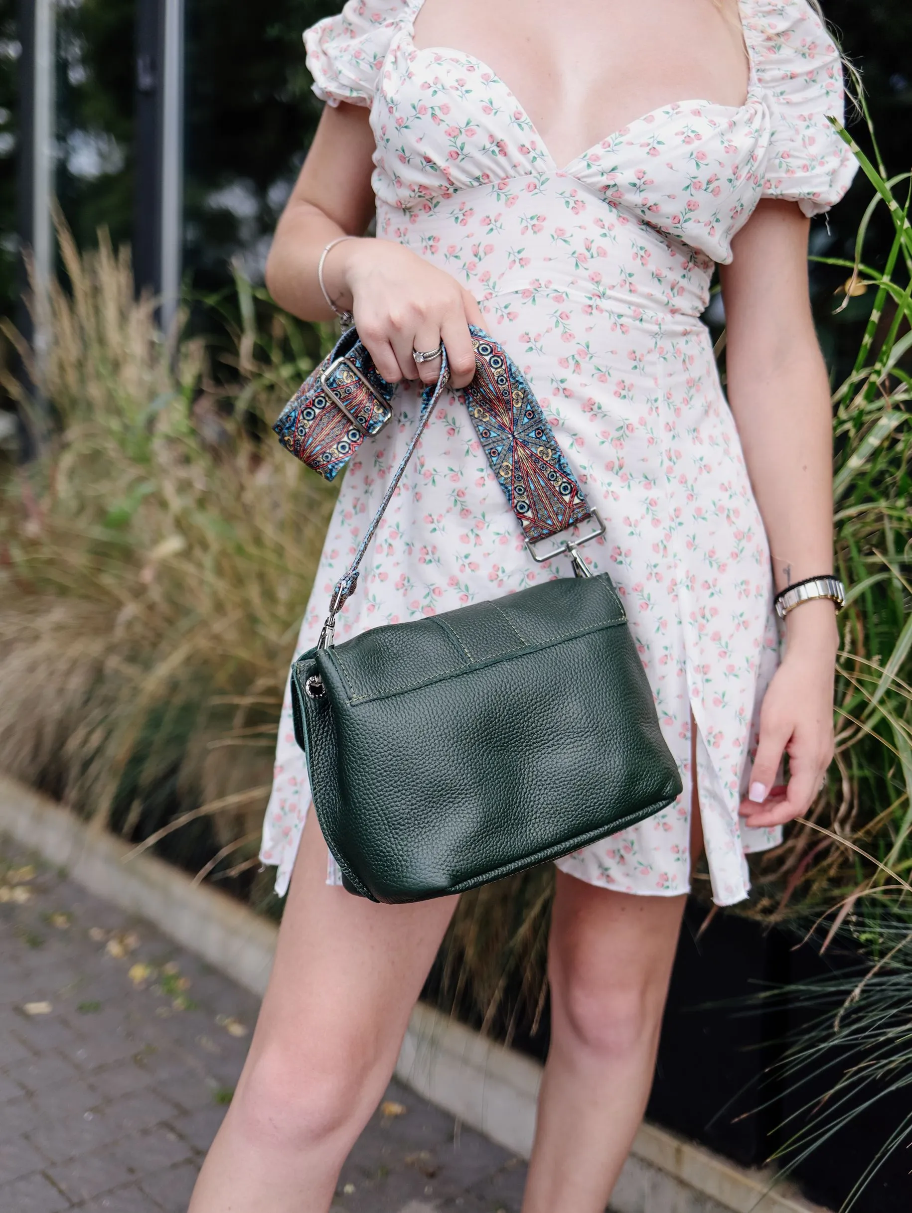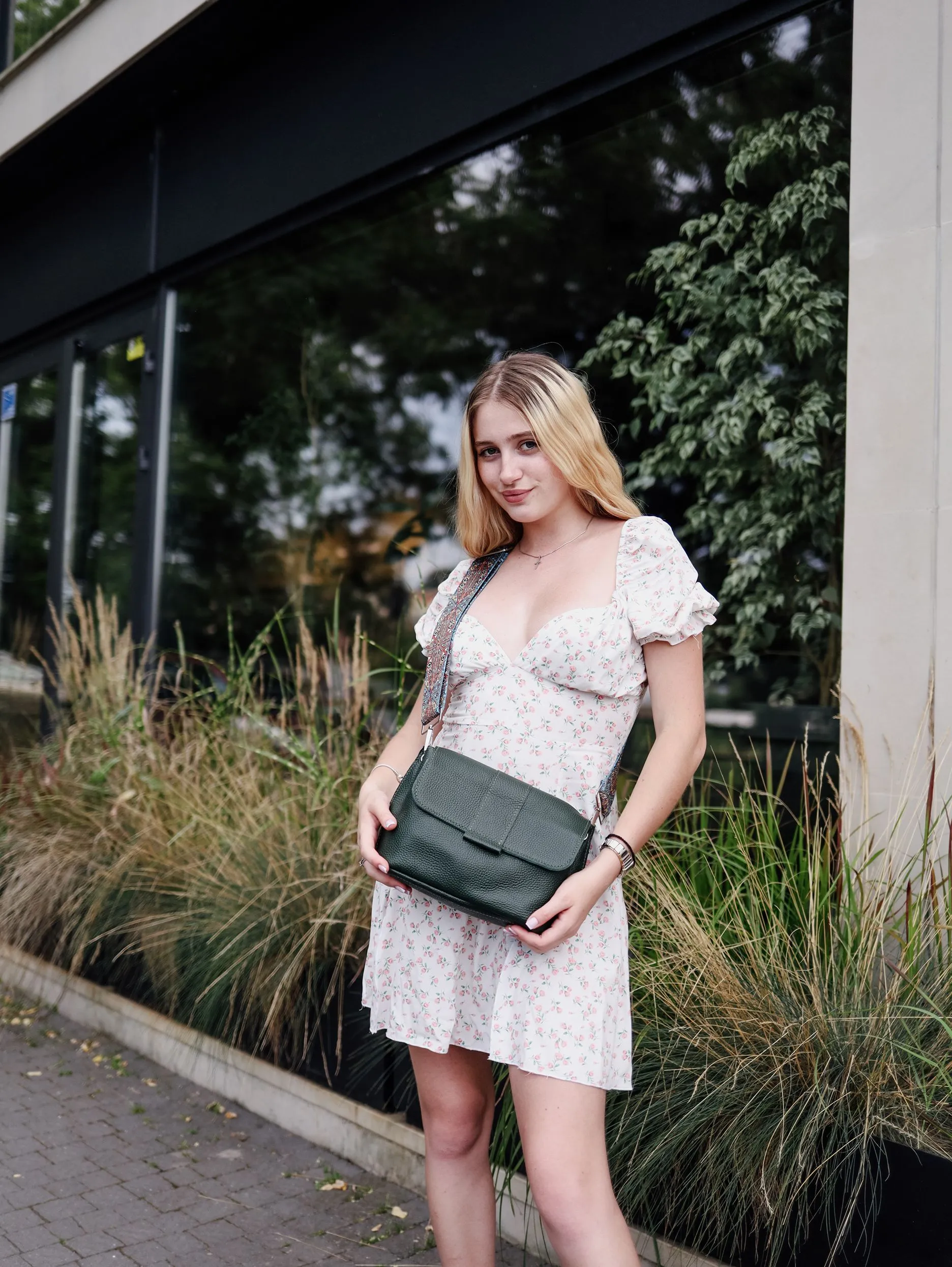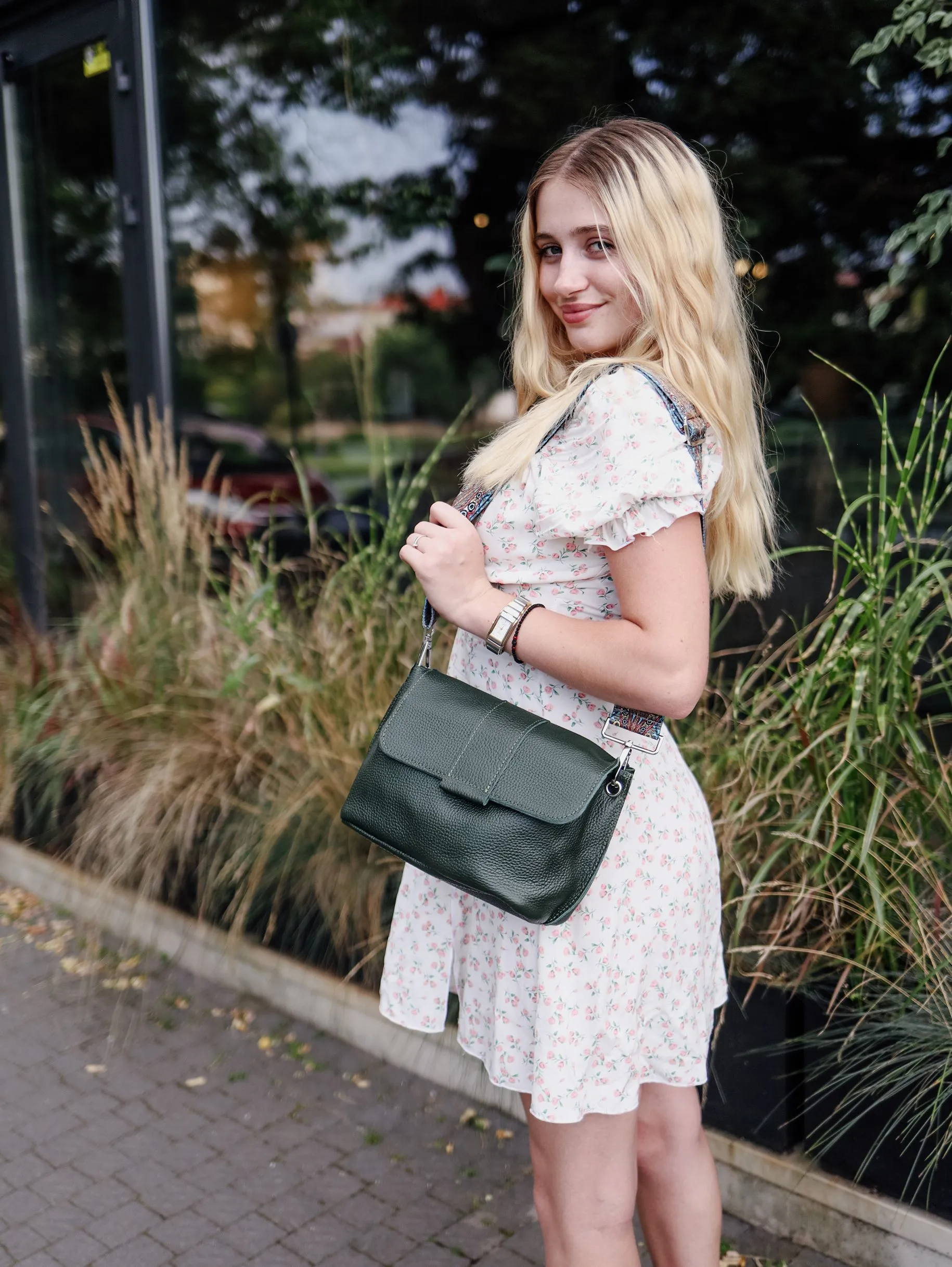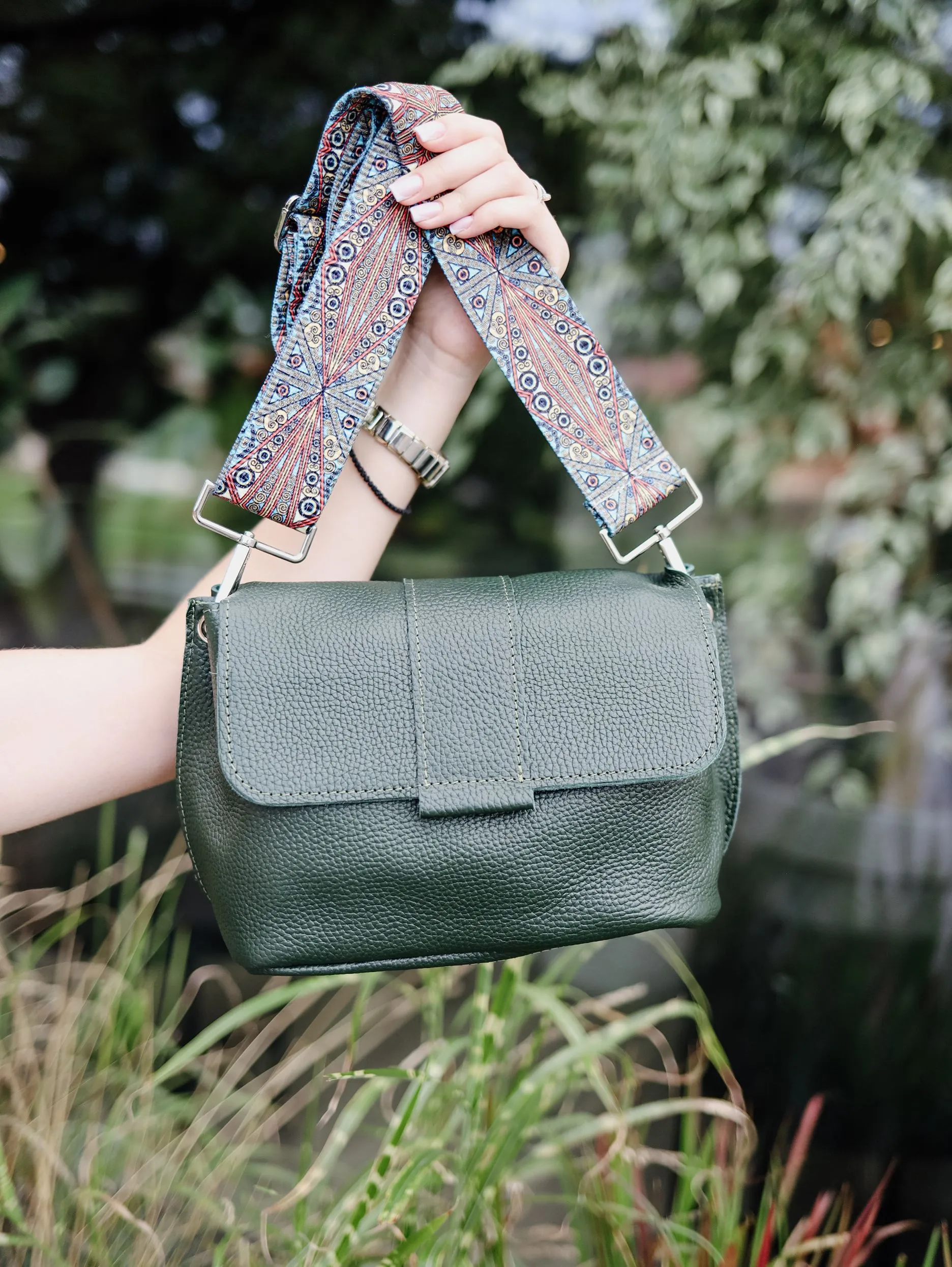 Женская сумка кросс-боди Miros Марокко цвета хаки выполнена из натуральной кожи флотар. Сумка снабжена качественной металлической фурнитурой. Есть три отделения, одно открытое, одно на металлической молнии и одно на кнопке. Закрывается сумка также на кнопку. Ремешок регулируется от 80 см до 115 см. Благодаря такой стильной дамской сумочке вы будете выделяться среди толпы и иметь с собой всегда все необходимое.