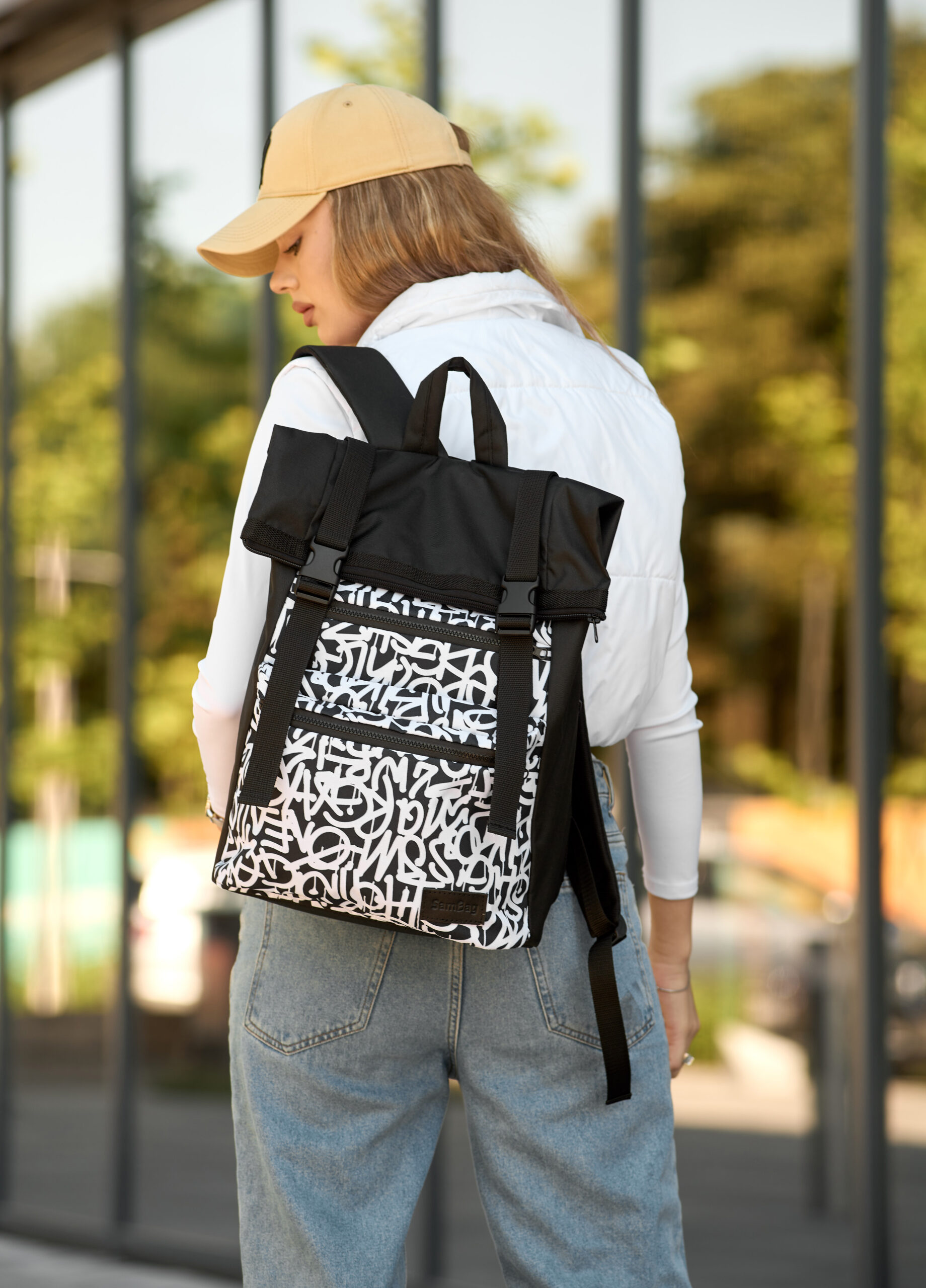 • Женский рюкзак для ноутбука Sambag RollTop LTT черный с принтомЧерный