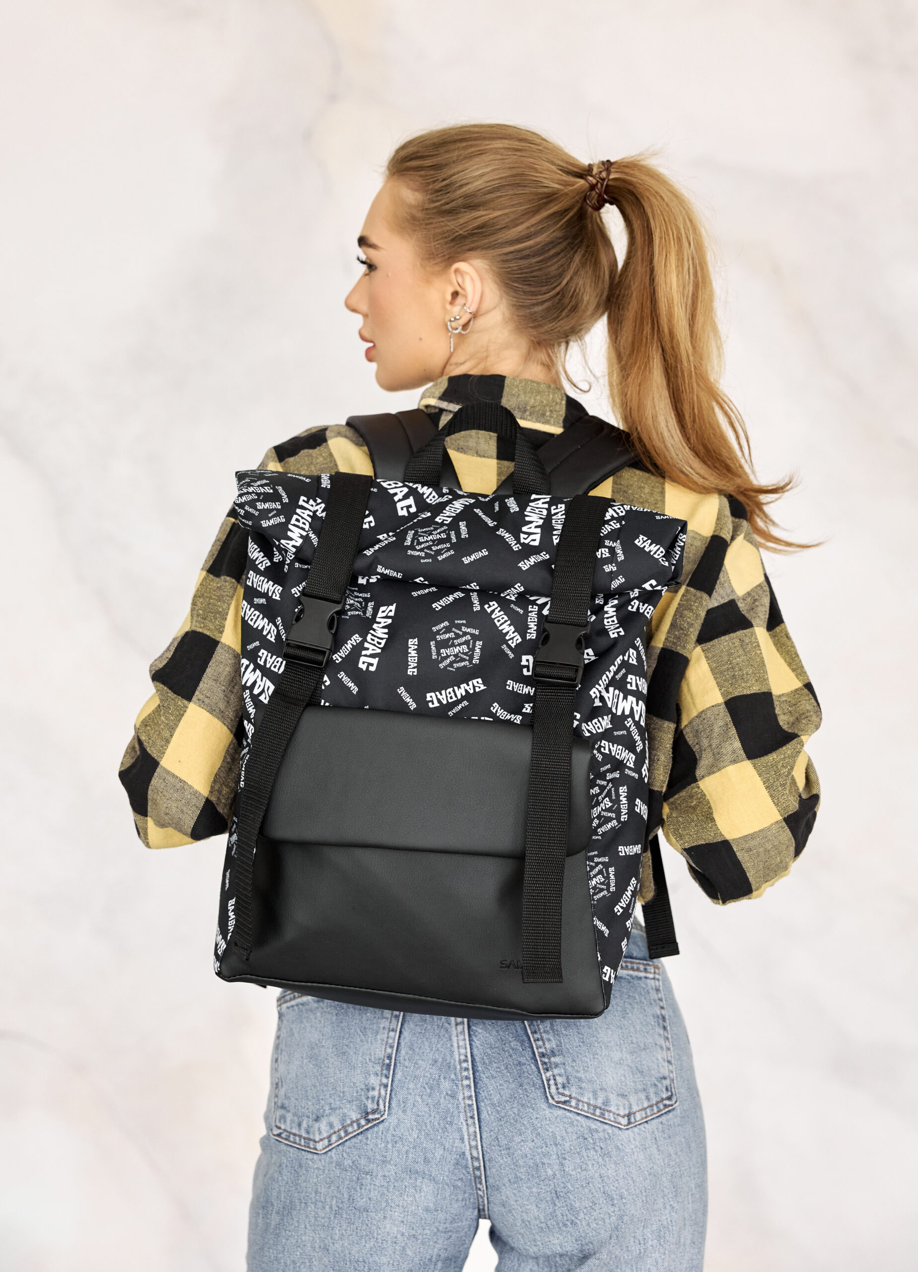 Женский рюкзак роллтоп RollTop Milton черный с принтом