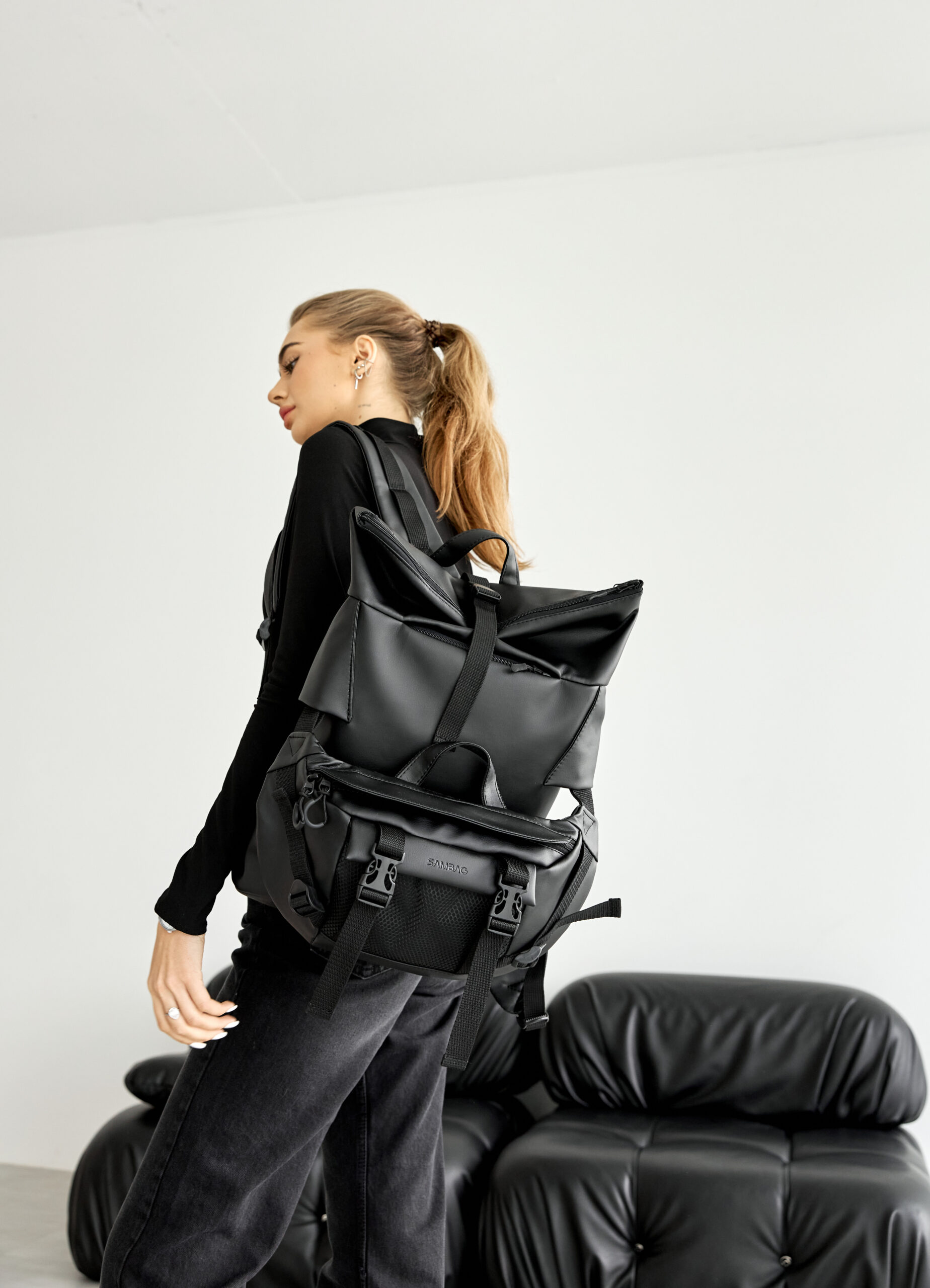 Рюкзак трансформер коллекции Roll создан для нужд города. С лицевой стороны к рюкзаку крепится бананка, ее можно снять и носить отдельно как рюкзак, так и саму бананку.