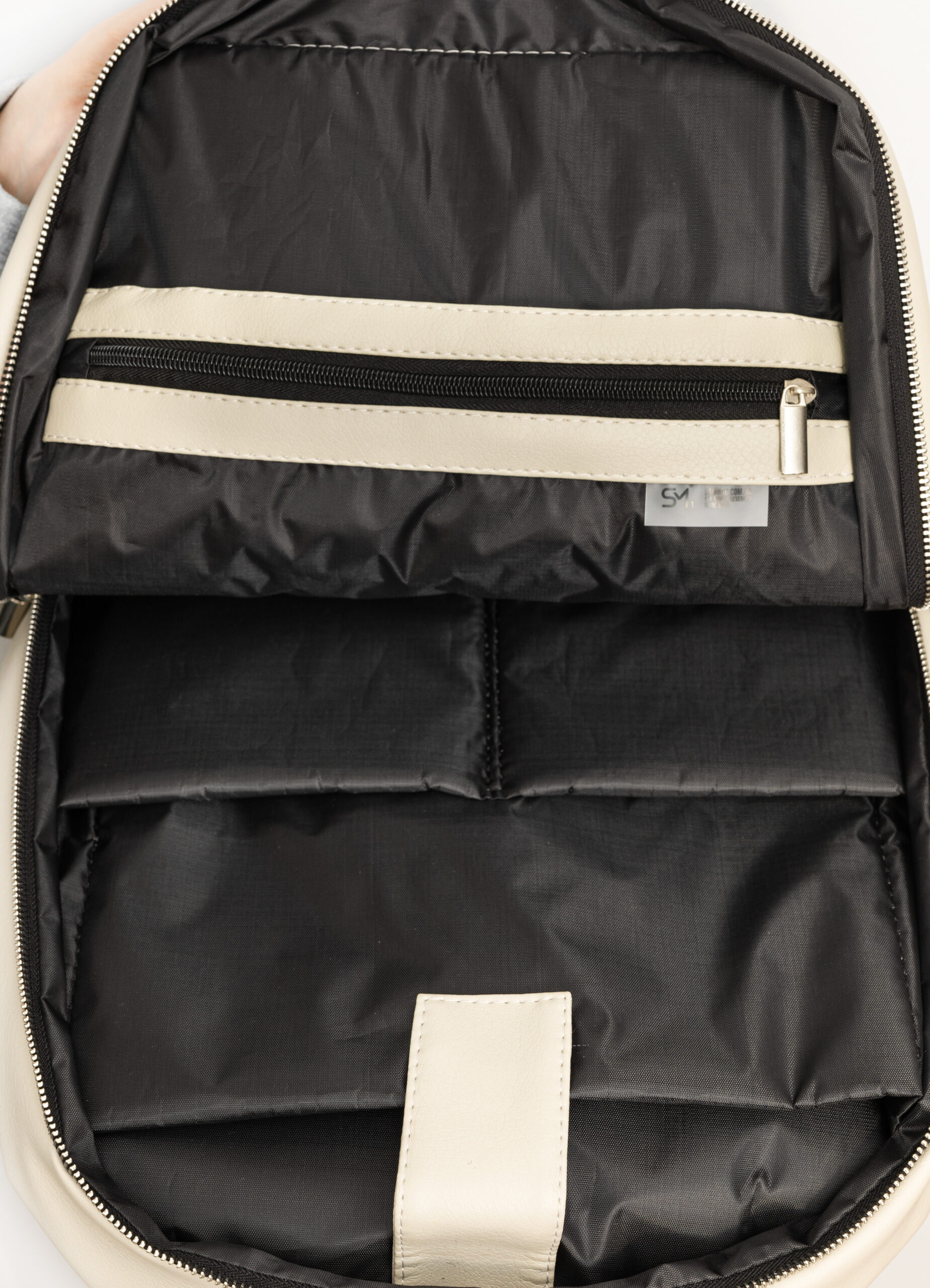 • С лицевой стороны рюкзака есть один большой карман на молнии для хранения важных вещей, таких как ключи, кошелек или телефон. Внутри основного отделения, есть отделение под ноутбук до 17 дюймов, а также два меньших кармана для хранения вещей. С другой стороны середины есть карман на молнии для хранения документов или других важных бумаг и еще один открытый карман. Снаружи на спинке рюкзака есть один дополнительный закрытый карман.